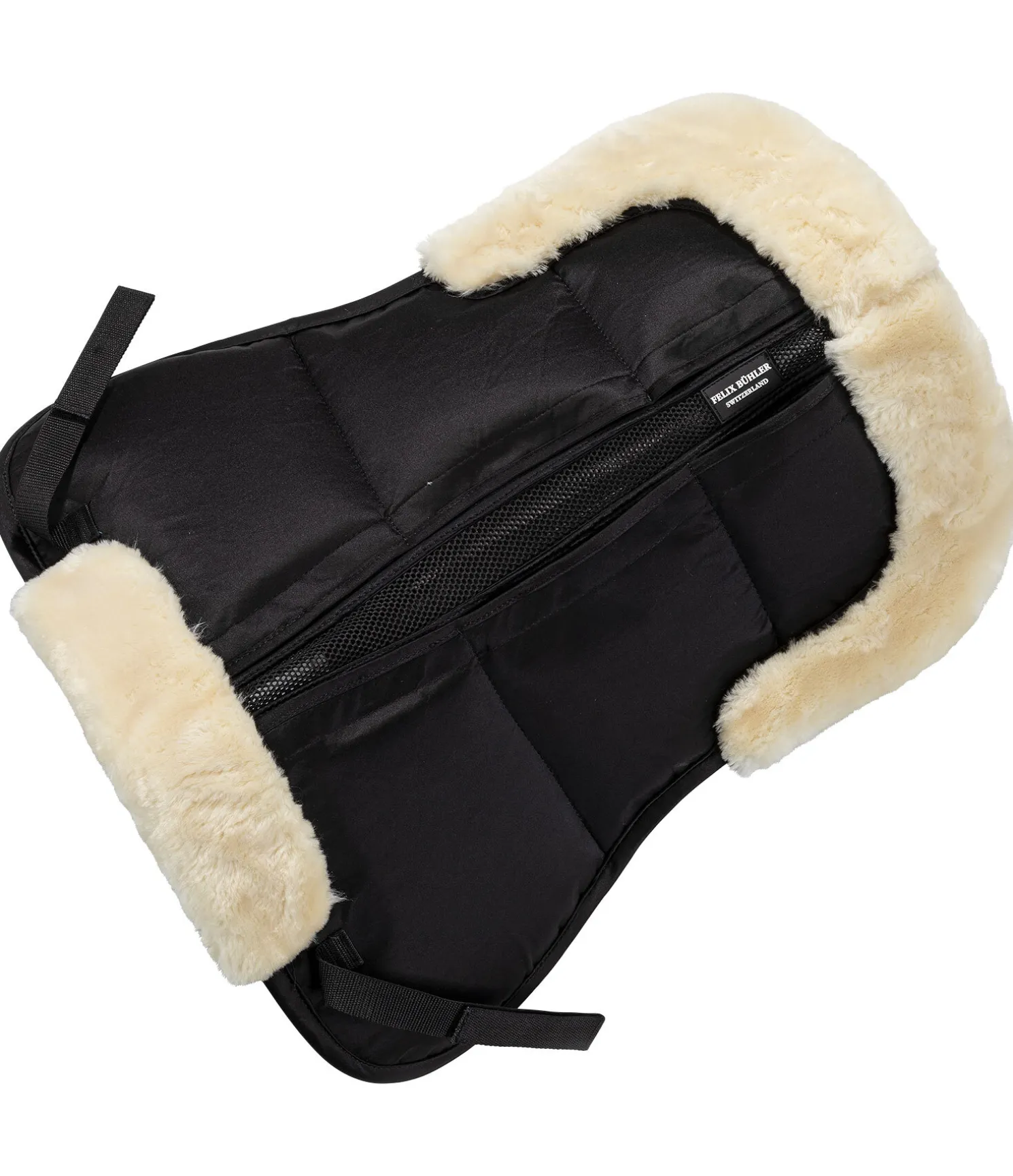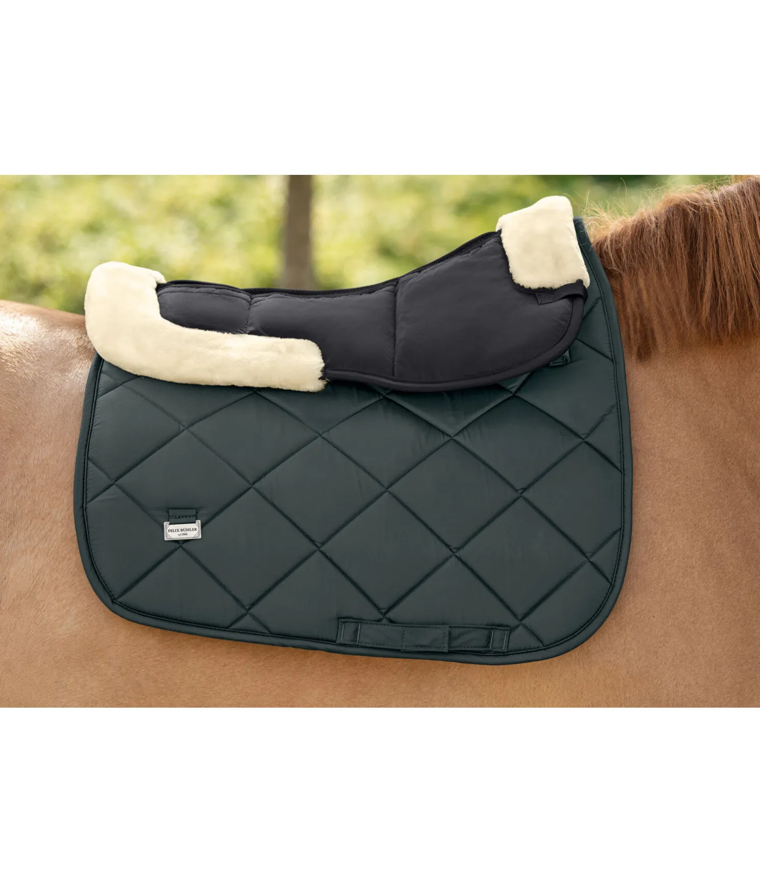 Élégant amortisseur offrant la possibilité de corriger la position de la selle grâce aux différents inserts. 6 poches avec fermeture par patte auto-agrippante. Chaque poche contient 2 pads en feutre et un pad en mousse à mémoire de forme pouvant être utilisés séparément. Bordure douce en polaire Teddy au niveau des matelassures et du garrot, ainsi qu’un empiècement en tissu mesh extrêmement respirant le long de la colonne vertébrale pour une circulation permanente de l’air. Dessous en Air Mesh respirant et absorbant l’humidité. 100 % polyester. Retirer les inserts amovibles avant lavage.