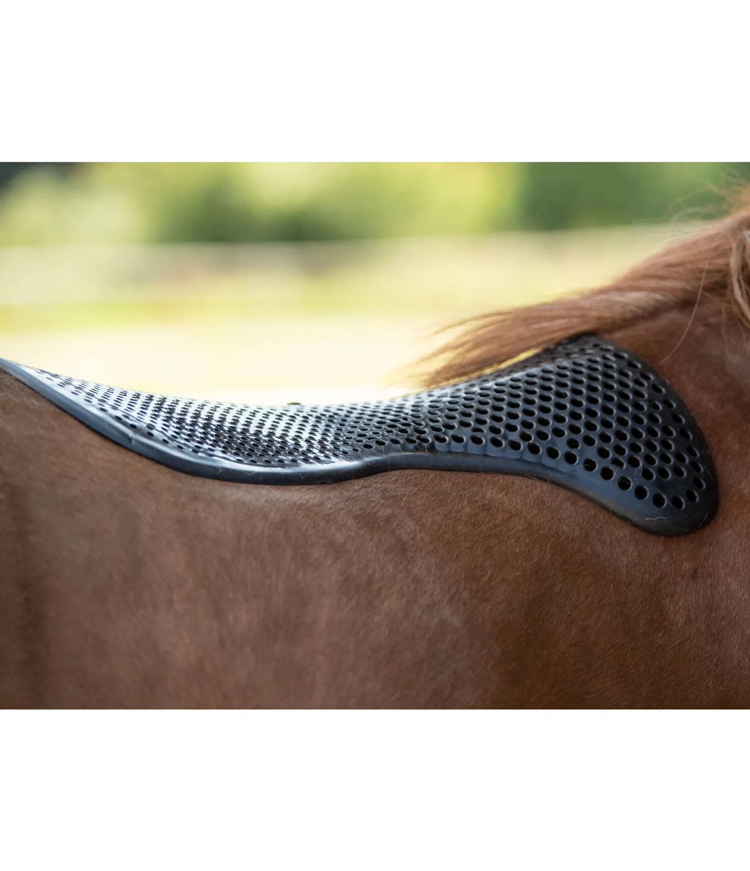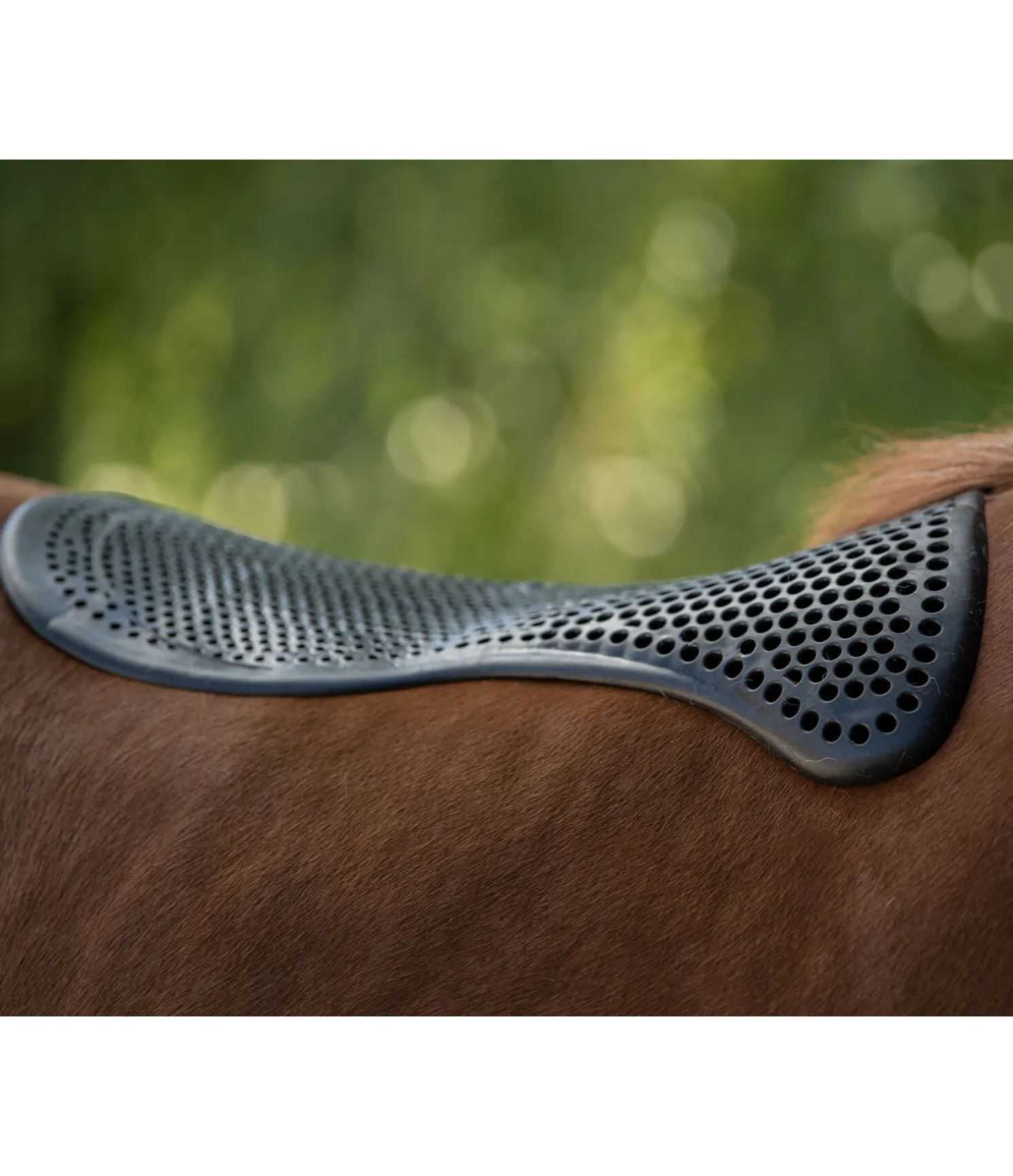 Amortisseur anatomique en gel (5 mm) avec épaisseur supplémentaire au niveau du garrot. Permet d’éviter que la selle ne glisse sur les épaules et assure une répartition optimale des pressions. Très facile à nettoyer. Longueur : 53 cm, largeur : 45 cm. Épaisseur au garrot : 18 mm.