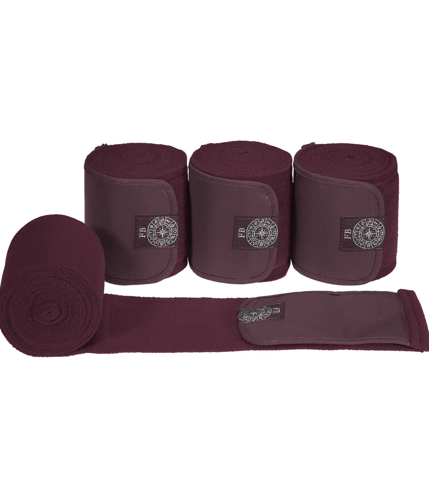 Bandes de polo en polaire. Large insert en tissu satiné et broderie scintillante. Patte auto-agrippante extra large pour un maintien sûr. 100 % polyester. F (cheval) : 300 x 11 cm, P (poney) : 200 x 8 cm. Vendues par lot de 4.