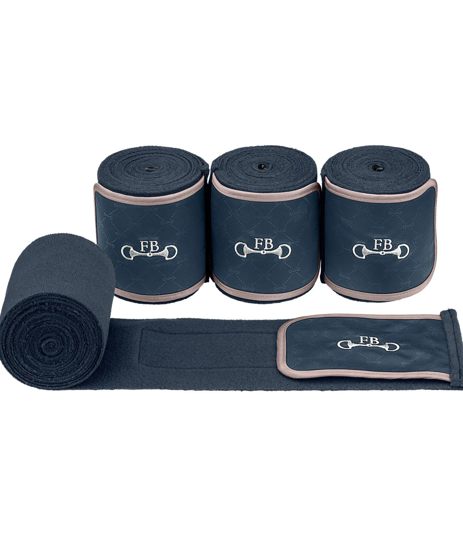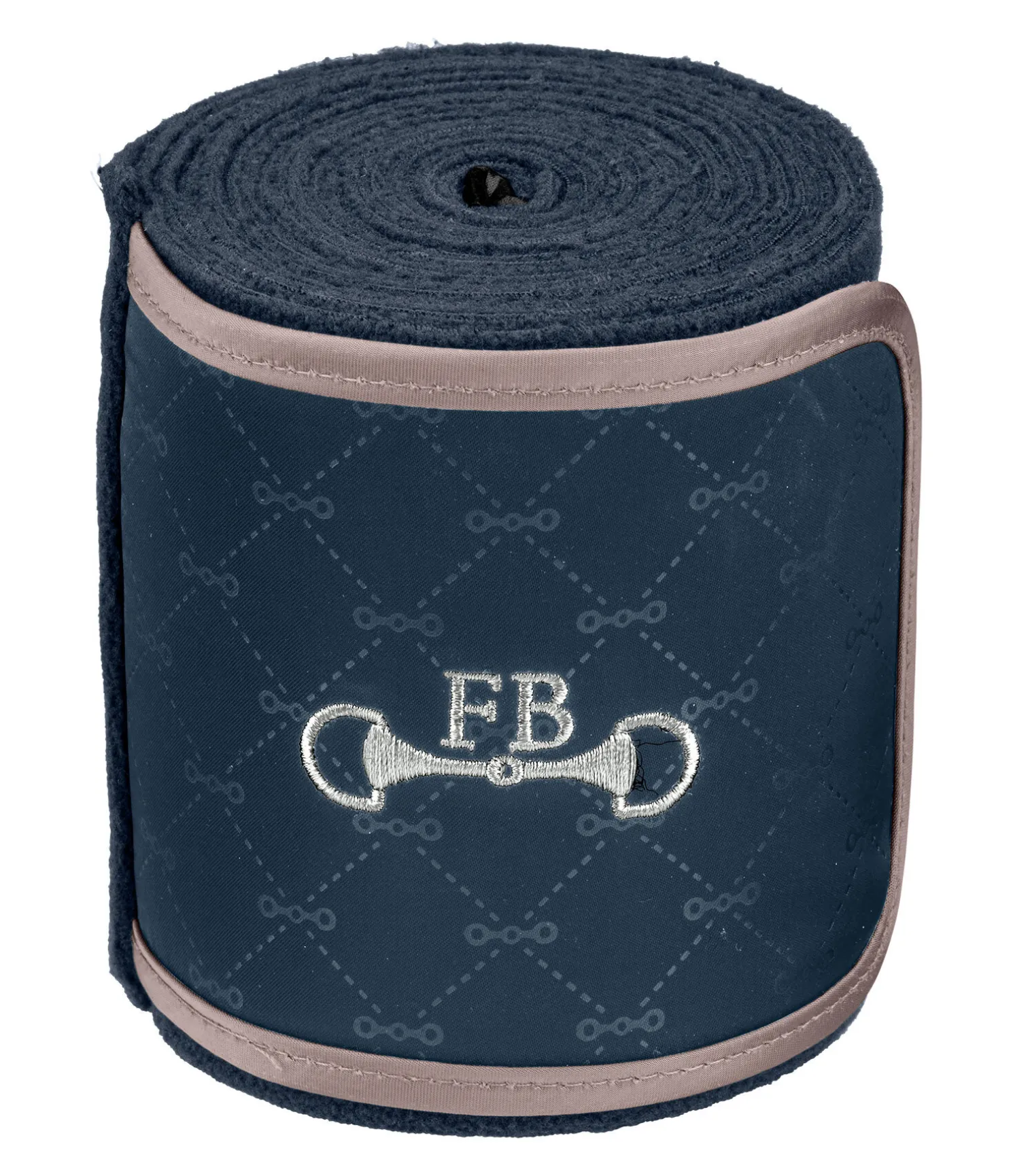 Bandes en polaire avec large insert en tissu satiné et motif de mors. Bordure en tissu de couleur contrastante. Petit mors brodé avec logo Felix Bühler. 100 % polyester. F (cheval) : 300 x 11 cm P (poney) : 200 x 8 cm. Vendues par lot de 4.