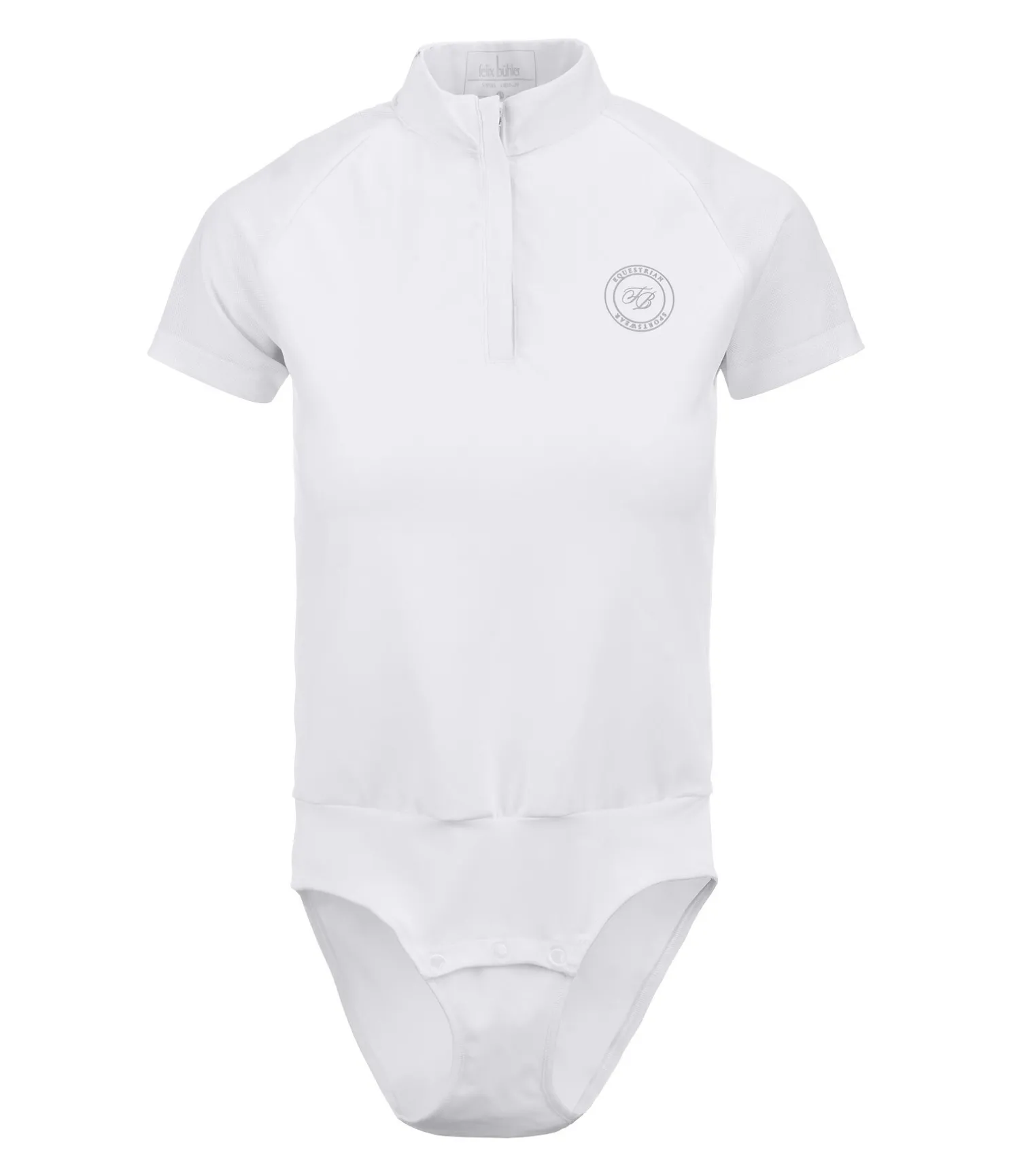 Body de concours extensible avec empiècements et manches en mesh. Col montant avec fermeture à glissière dissimulée. La fermeture par boutons-pression à l’avant évite les frottements et empêche que le vêtement glisse. 83 % polyester, 17 % élasthanne.