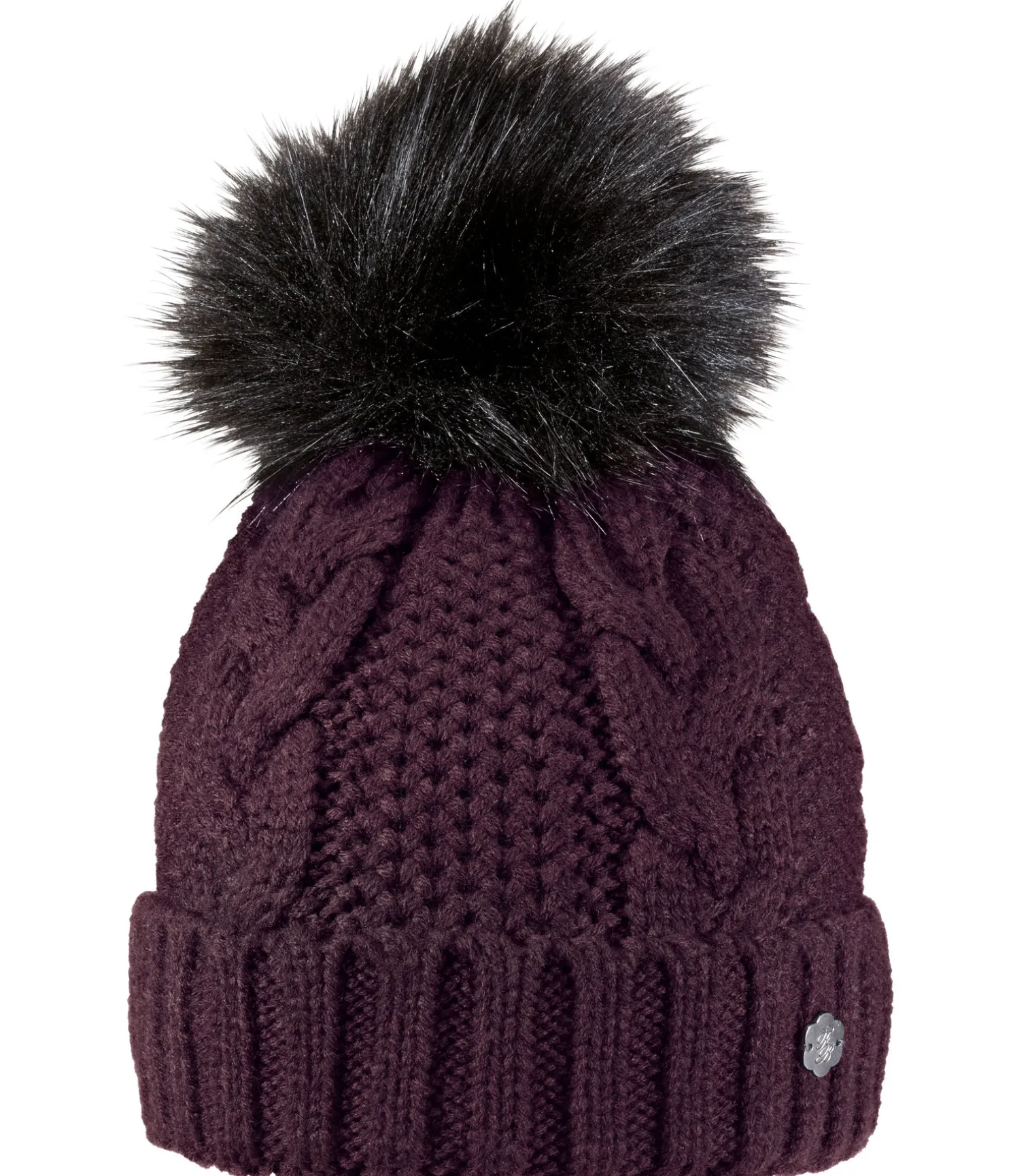 Bonnet à pompon confortable en maille torsadée. Doublure en polaire extra-douce. Extérieur 100 % polyacrylique, intérieur 100 % polyester. Lavage à la main.