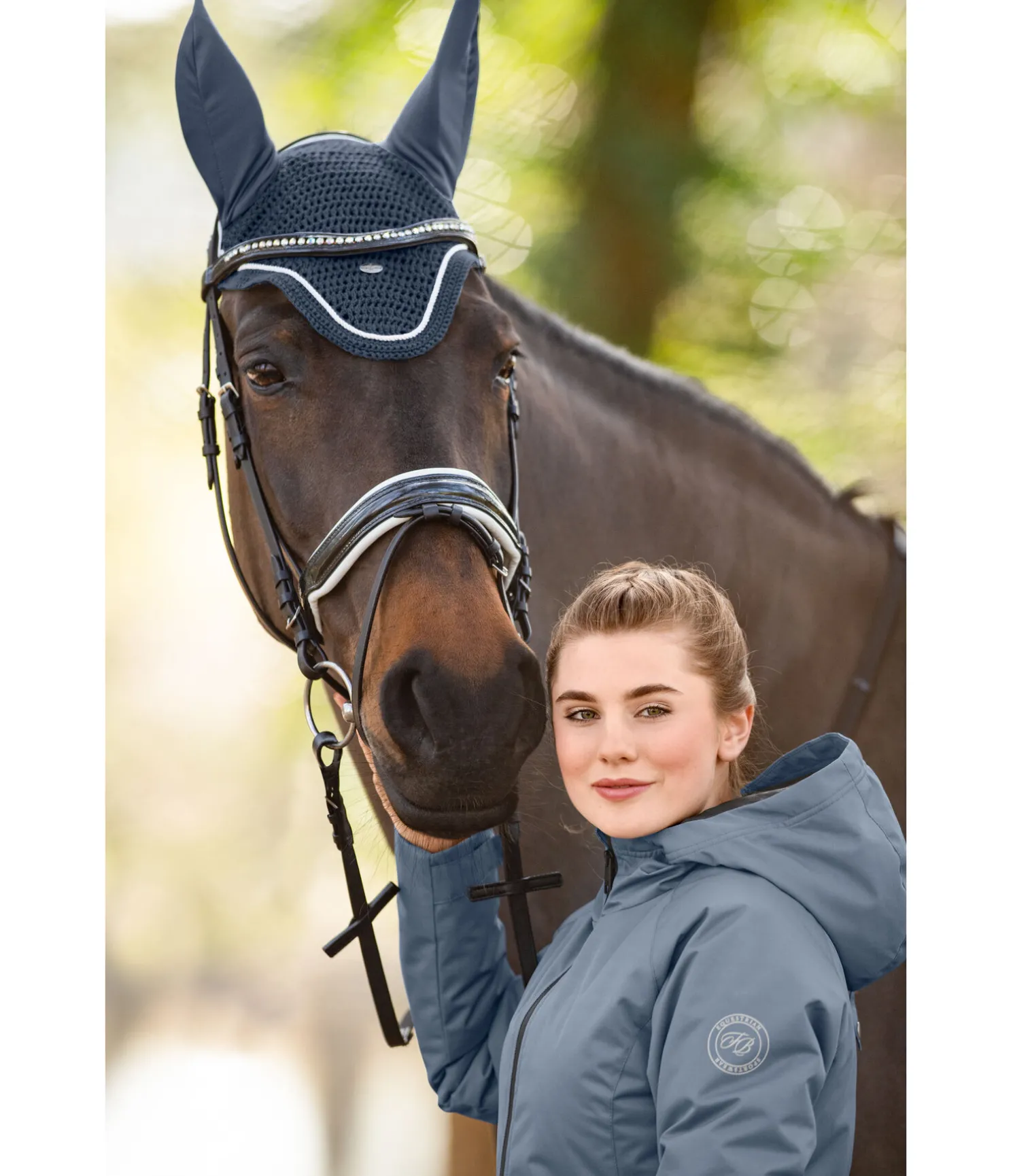 Bonnet anti-mouches classique en maille crochetée avec cordon décoratif satiné discret de couleur contrastante. Matière extensible aux oreilles. Petite plaque argentée filigrane avec logo gravé. Maille 100 % polyester, matière extensible 97 % polyester, 3 % élasthanne.