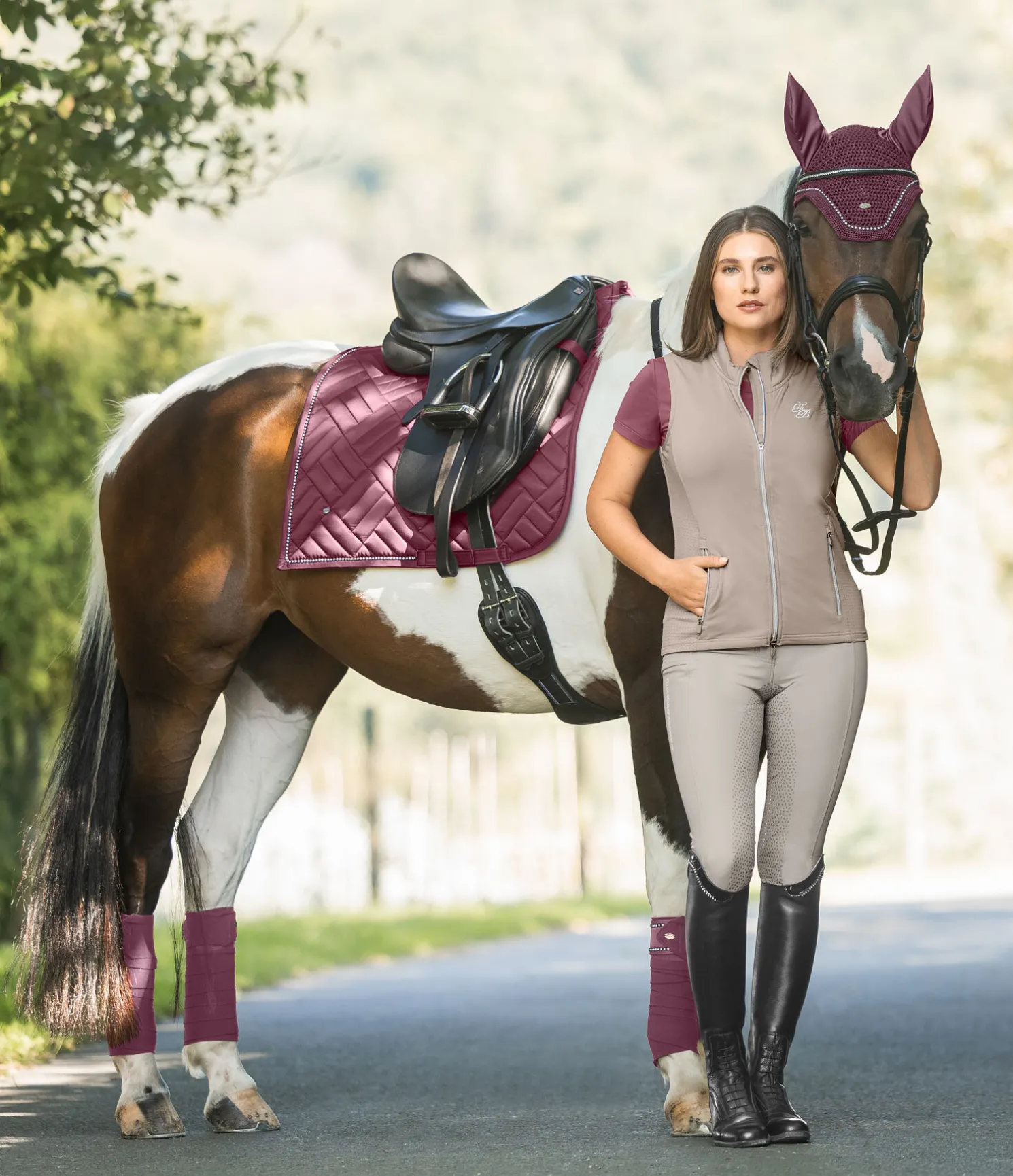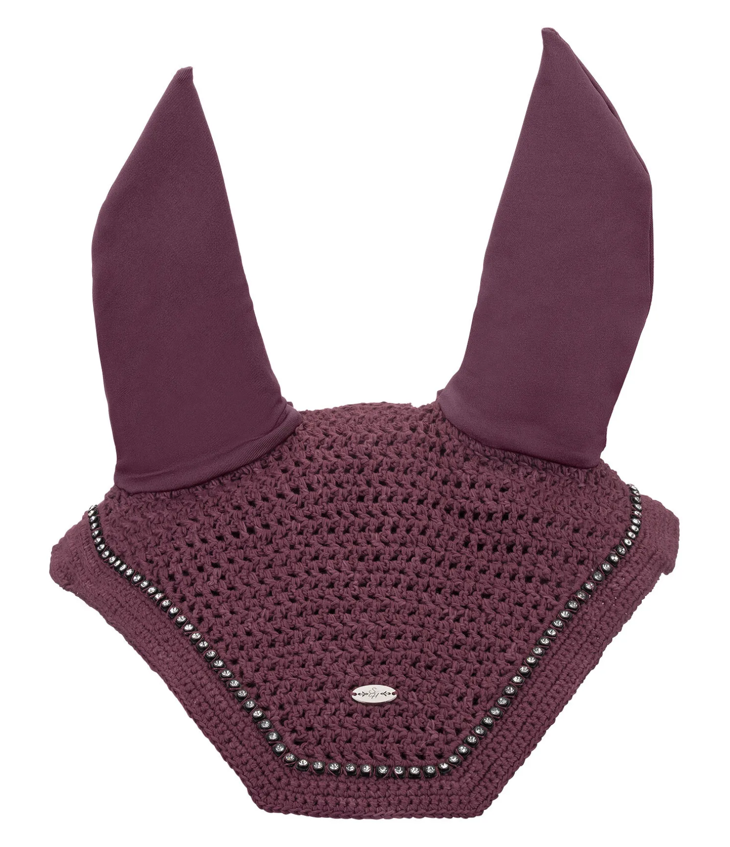 Élégant bonnet anti-mouches avec strass. Petit médaillon discret avec logo gravé. Matière extensible aux oreilles. Deux pattes auto-agrippantes permettant de fixer le bonnet à la têtière du bridon. Bonnet 100 % polyester, matière extensible 97 % polyester, 3 % élasthanne.