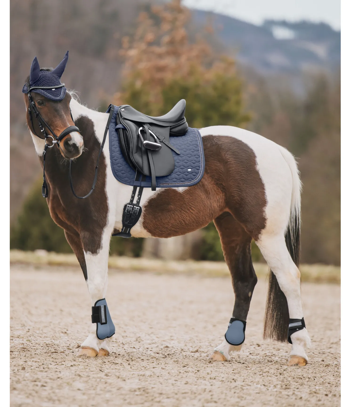 Bonnet anti-mouches en large maille crochetée orné de petits strass et d’un double cordon décoratif brillant. Matière extensible aux oreilles pour un confort optimal et plaque logo filigrane argentée. Bonnet 100 % polyester, oreilles 88 % polyester, 12 % élasthanne.