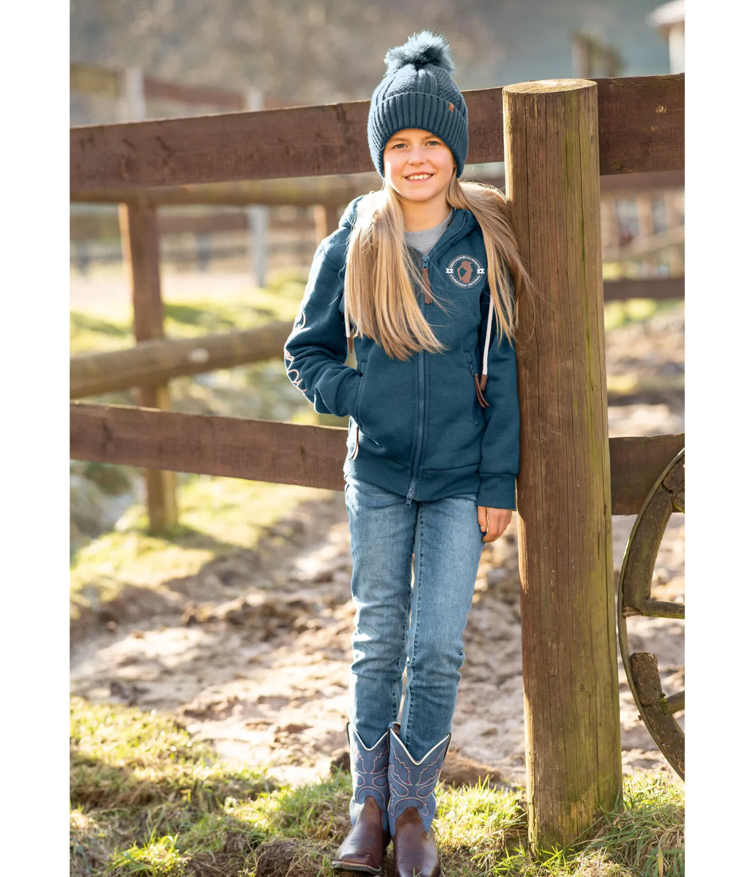 Bonnet à revers en maille avec pompon en fourrure synthétique. Doublure intérieure en polaire chaude. 100 % polyacrylique, doublure 100 % polyester.