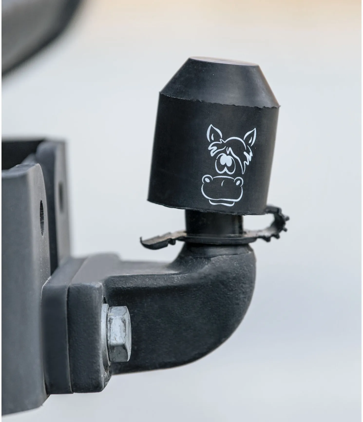 Protection d’attelage en caoutchouc avec impression tête de cheval.
