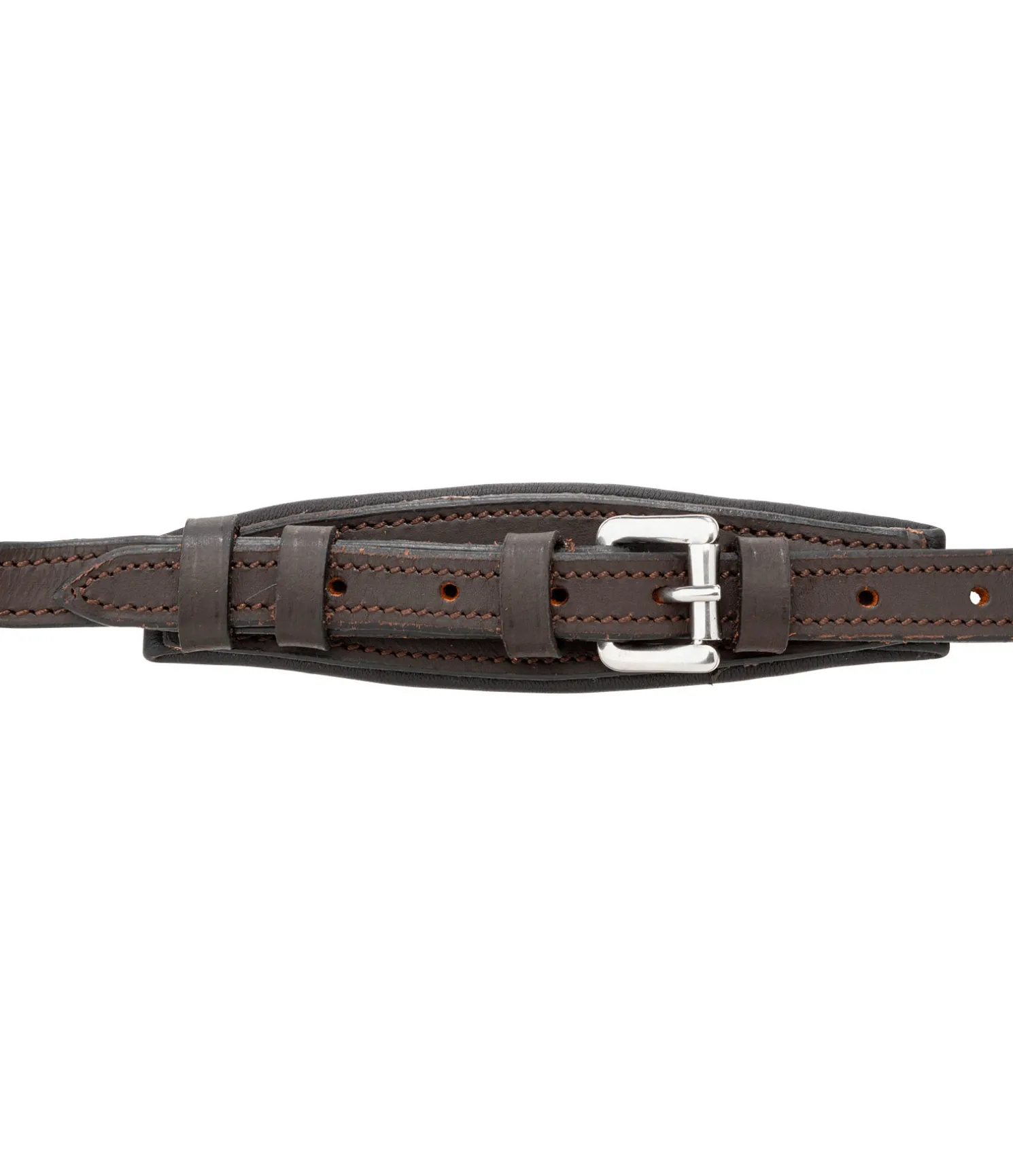 Bridon confortable en cuir gras souple. Muserolle combinant les effets d’une muserolle française et d’une muserolle allemande. Les anneaux de fixation latéraux du noseband permettent d’éviter les pressions sur l’os du nez, facilitent la fermeture et offrent davantage de liberté aux naseaux. Têtière anatomique extra-large, muserolle, pad de menton et frontal avec doublure extra-moelleuse en cuir véritable. Cuir gras. Bouclerie argentée. Sans rênes, sans mors.