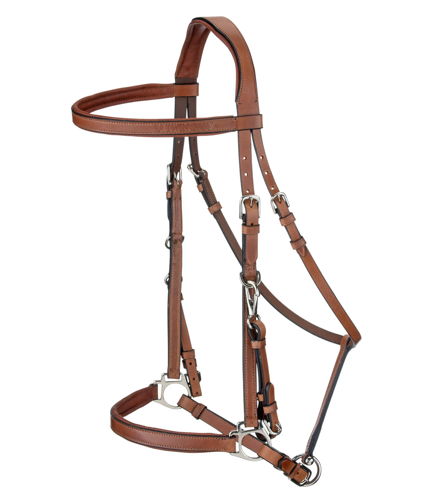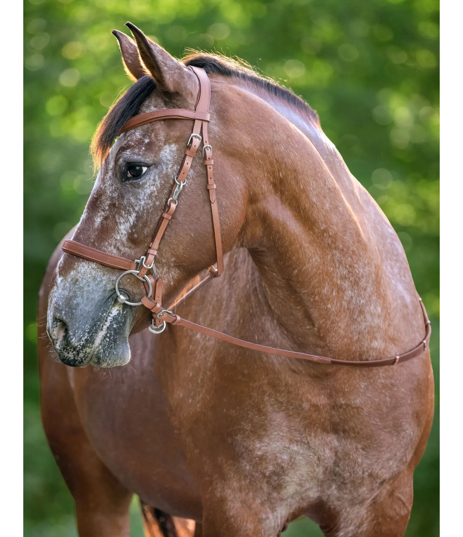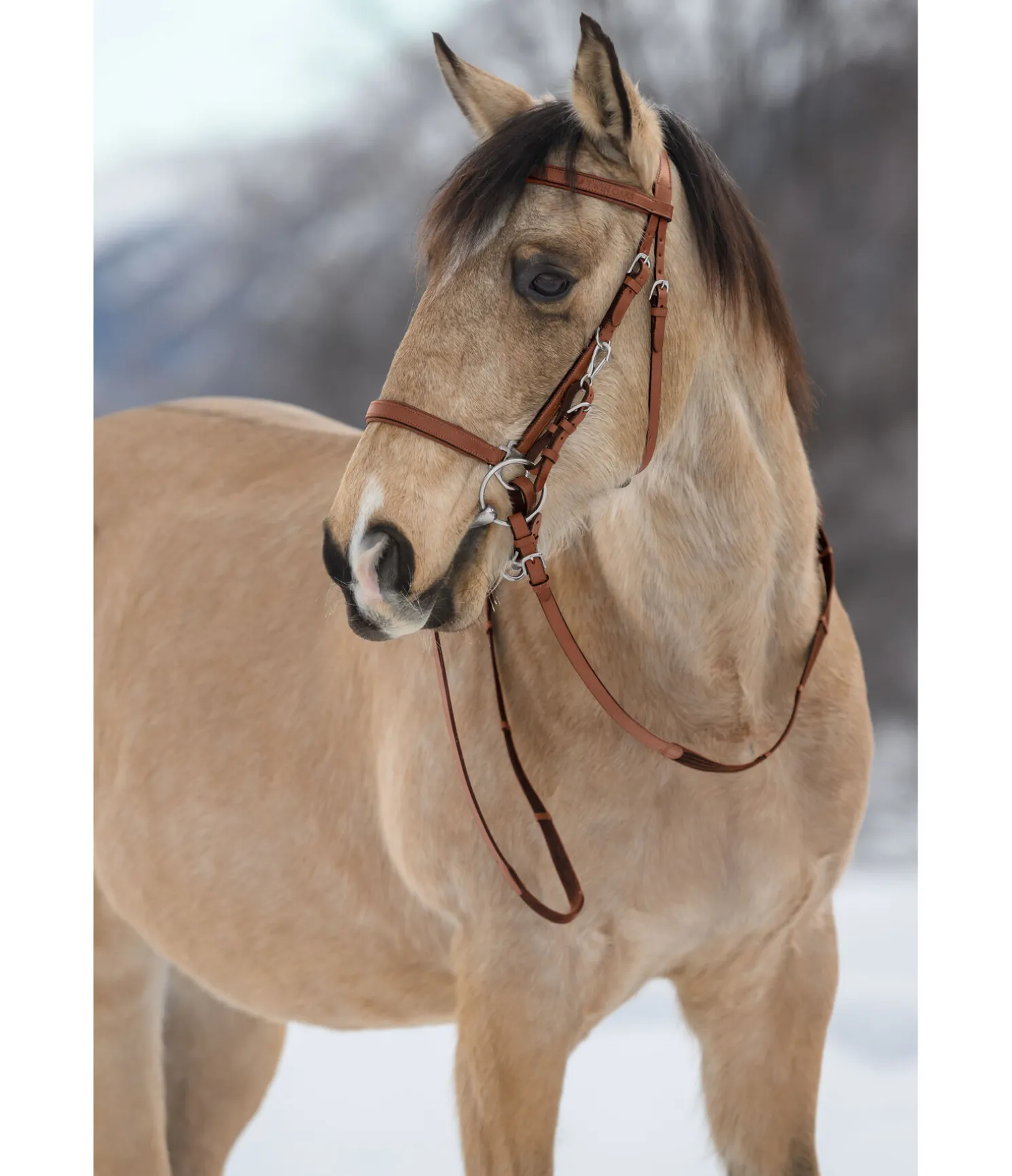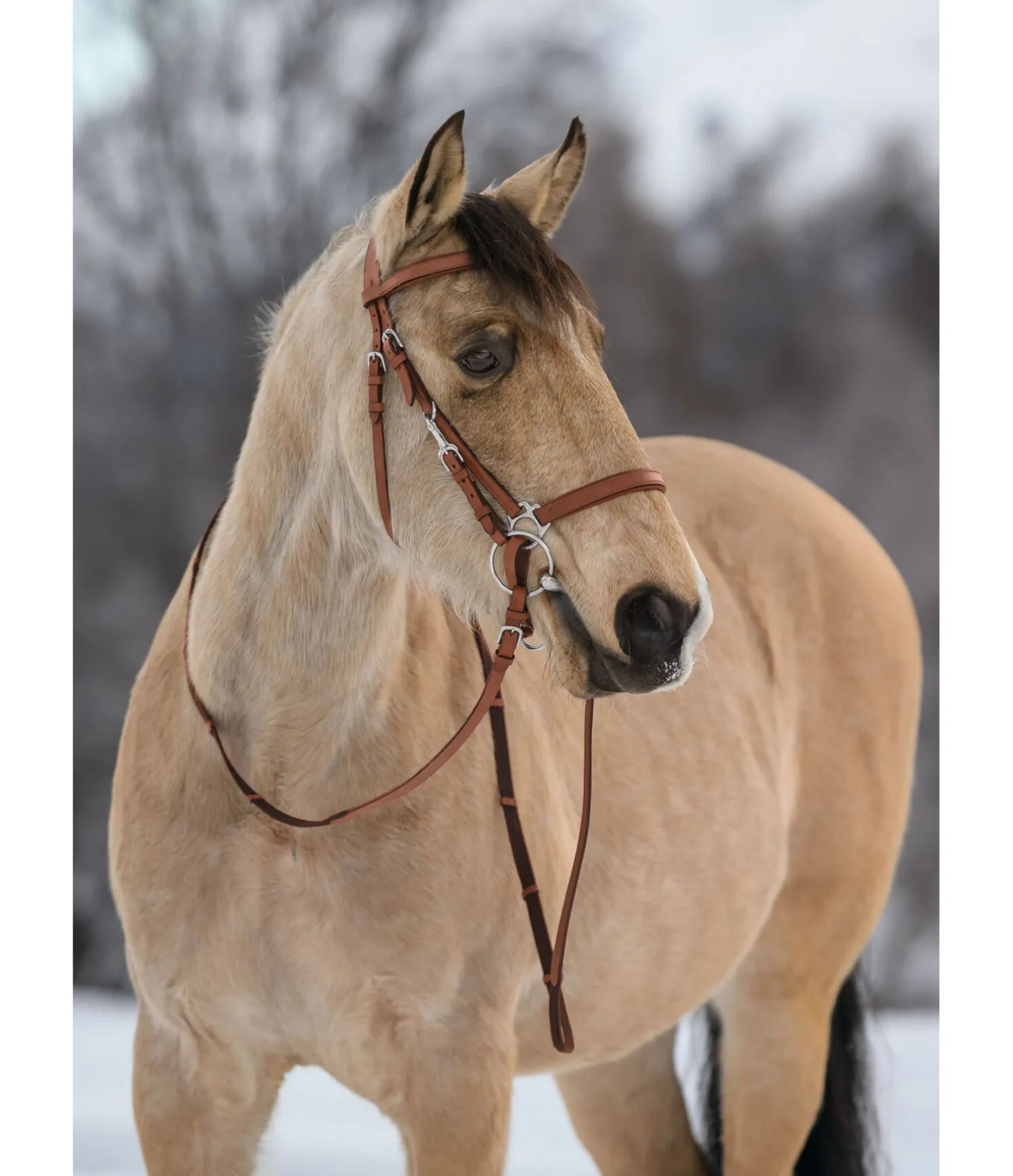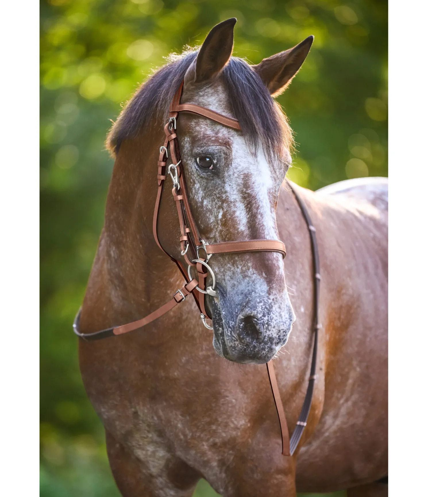 Bridon de randonnée de grande qualité en cuir Premium avec têtière anatomique. Combinaison parfaite d’un bridon et d’un licol. L’anneau sous la muserolle permet de l’utiliser comme licol. Têtière et muserolle avec doublure moelleuse. Bouclerie en acier inoxydable. Avec rênes sangle, sans mors.