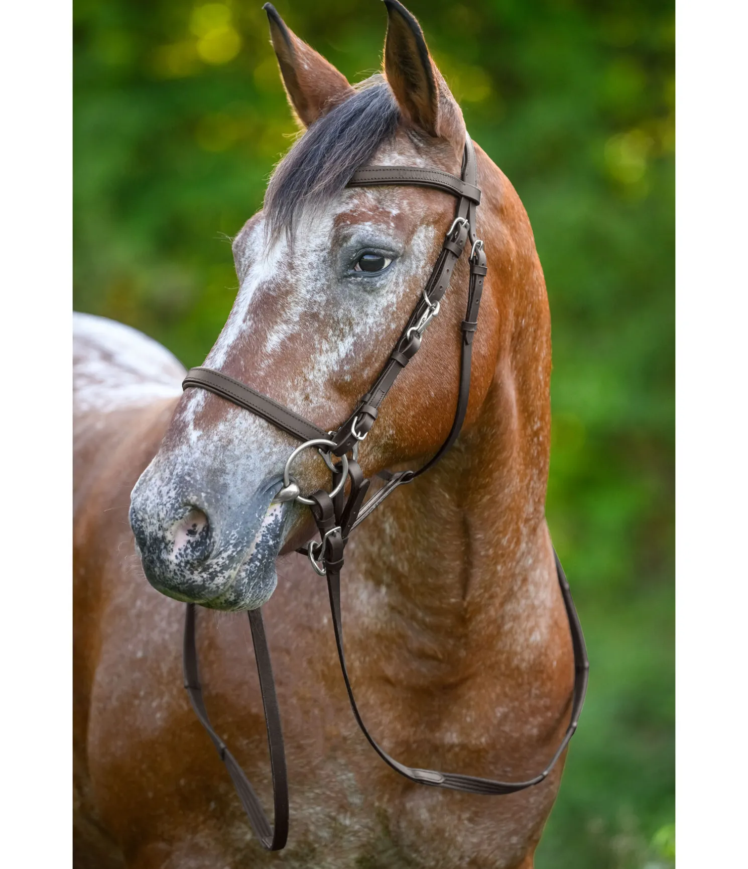 Bridon de randonnée de grande qualité en cuir Premium avec têtière anatomique. Combinaison parfaite d’un bridon et d’un licol. L’anneau sous la muserolle permet de l’utiliser comme licol. Têtière et muserolle avec doublure moelleuse. Bouclerie en acier inoxydable. Avec rênes sangle, sans mors.