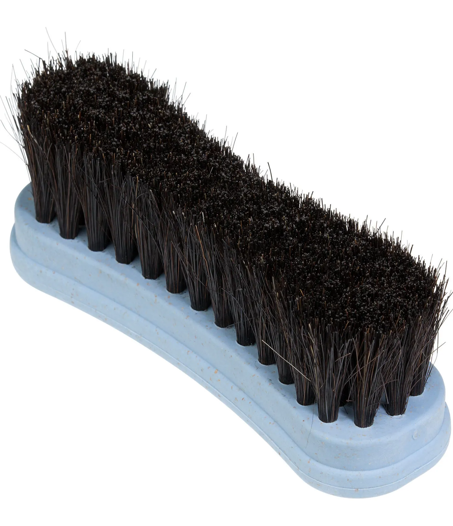 Brosse douce pour la tête. Composée à 45 % de plastique recyclé et à 55 % de fibres de paille et de riz. Poils en crin de cheval. 11,7 x 3,5 cm.