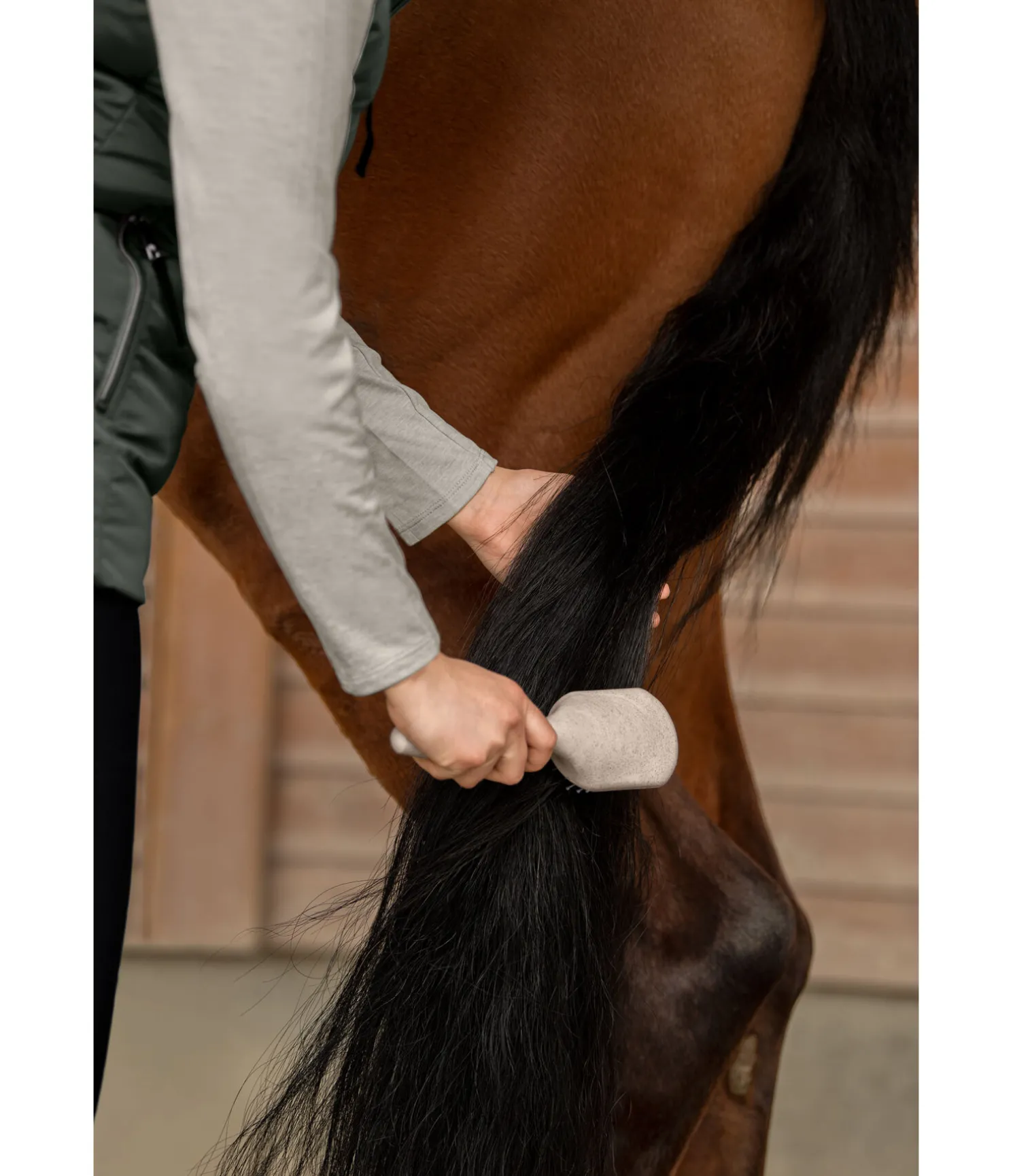 Brosse en matière durable pour crinière et queue, composée à 45 % de plastique recyclé et à 55 % de fibres de paille et de riz. Poils synthétiques. 24 x 7,5 cm.