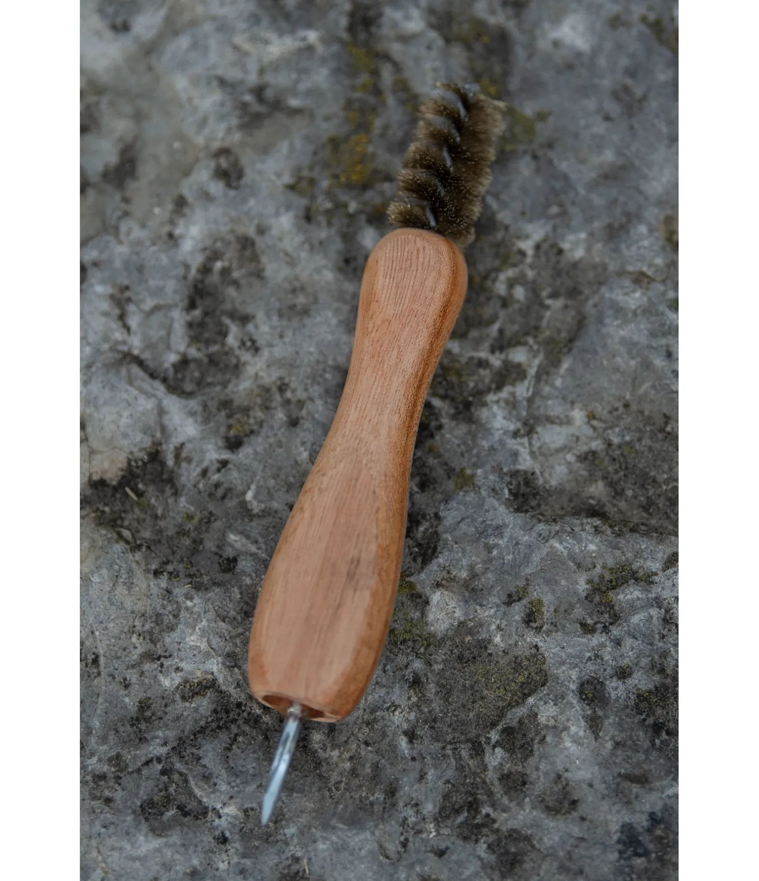 Brosse spécialement conçue pour nettoyer les mortaises et crampons. La pointe permet d’enlever facilement les petits cailloux coincés. 15 cm.