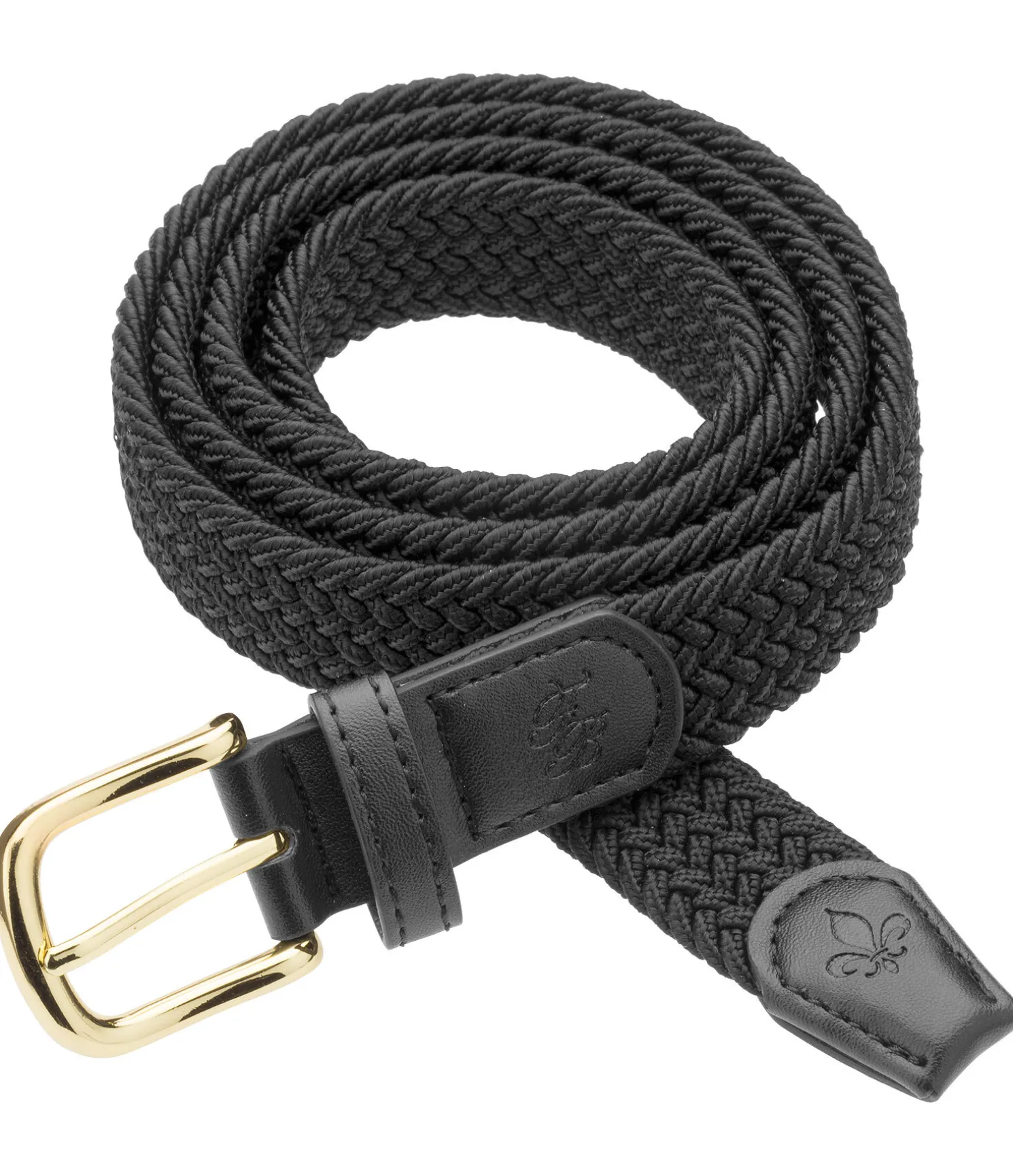 Ceinture élastique fine (largeur 2,5 cm). Boucle dorée avec finitions en synthétique. Réglable en continu. 100 % polyester. XS (85 cm), S (95 cm), M (105 cm), L (115 cm), longueur mesurée de l’ardillon à l’extrémité de la ceinture.