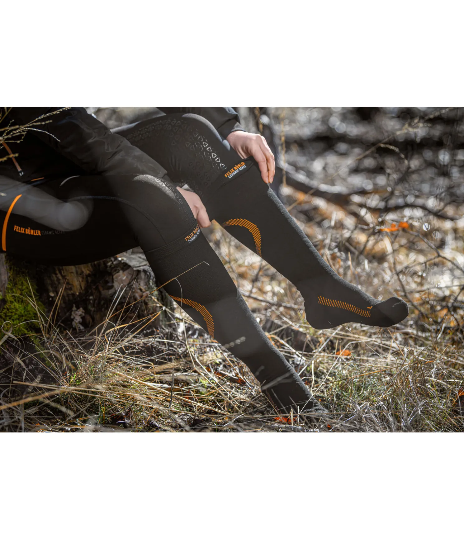 Chaussettes de compression hautes. Matière respirante contenant des fibres de céramique favorisant la circulation sanguine et pouvant stimuler le flux lymphatique. Idéales en cas de raideurs et de crampes musculaires au niveau des mollets ou en cas de rétention d’eau dans les jambes ou les pieds. Voûte plantaire légèrement rembourrée pour un confort optimal. Pour obtenir l’effet souhaité, les chaussettes doivent être ajustées et agréables à porter. 80 % polyester, 12 % nylon, 8 % élasthanne.