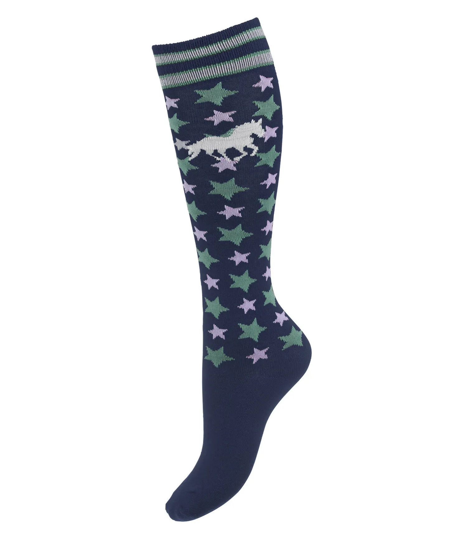 Chaussettes hautes pour enfant en design étoiles tendance avec motif cheval. 80 % coton, 20 % élasthanne.