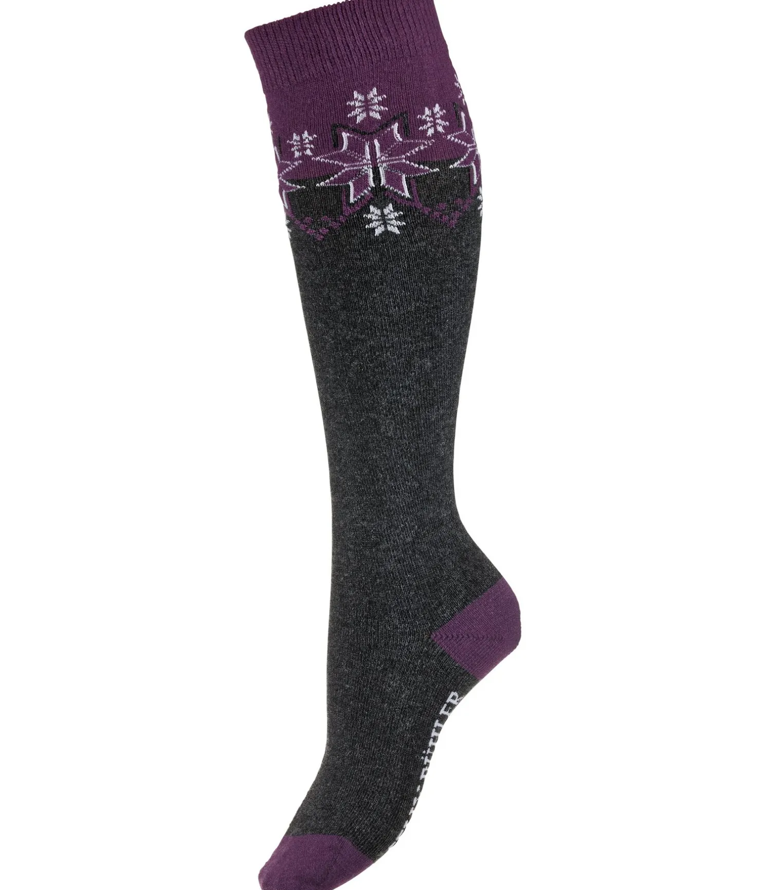 Chaussettes hautes confortables et chaudes en mélange de matières techniques, ornées d’un motif flocon de neige. De par leur haute teneur en laine mérinos, elles sont respirantes et évitent les odeurs persistantes. 28 % laine, 47 % polyacrylique, 14 % polyester, 10 % viscose, 1 % élasthanne. Tailles: 1 (35 – 38) ou 2 (39 – 42).