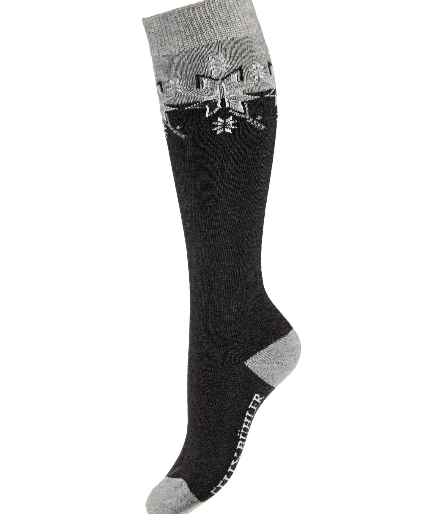Chaussettes hautes confortables et chaudes en mélange de matières techniques, ornées d’un motif flocon de neige. De par leur haute teneur en laine mérinos, elles sont respirantes et évitent les odeurs persistantes. 28 % laine, 47 % polyacrylique, 14 % polyester, 10 % viscose, 1 % élasthanne. Tailles: 1 (35 – 38) ou 2 (39 – 42).