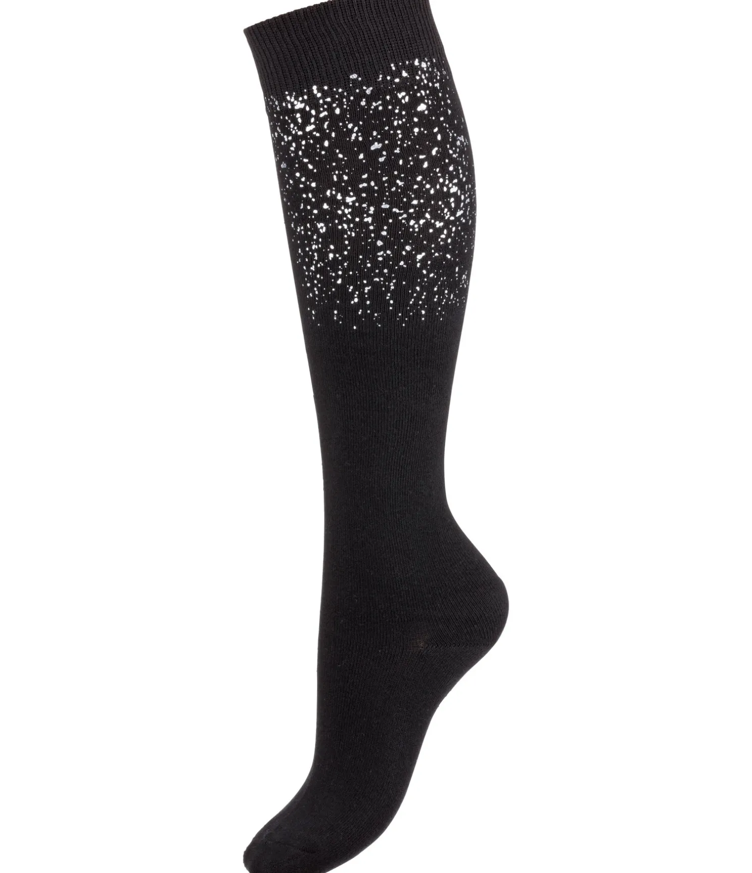 Chaussettes hautes avec un joli imprimé pailleté. Haute teneur en coton pour un confort optimal. Bordure élastiquée et douce. 80 % coton, 17 % polyester, 3 % élasthanne.