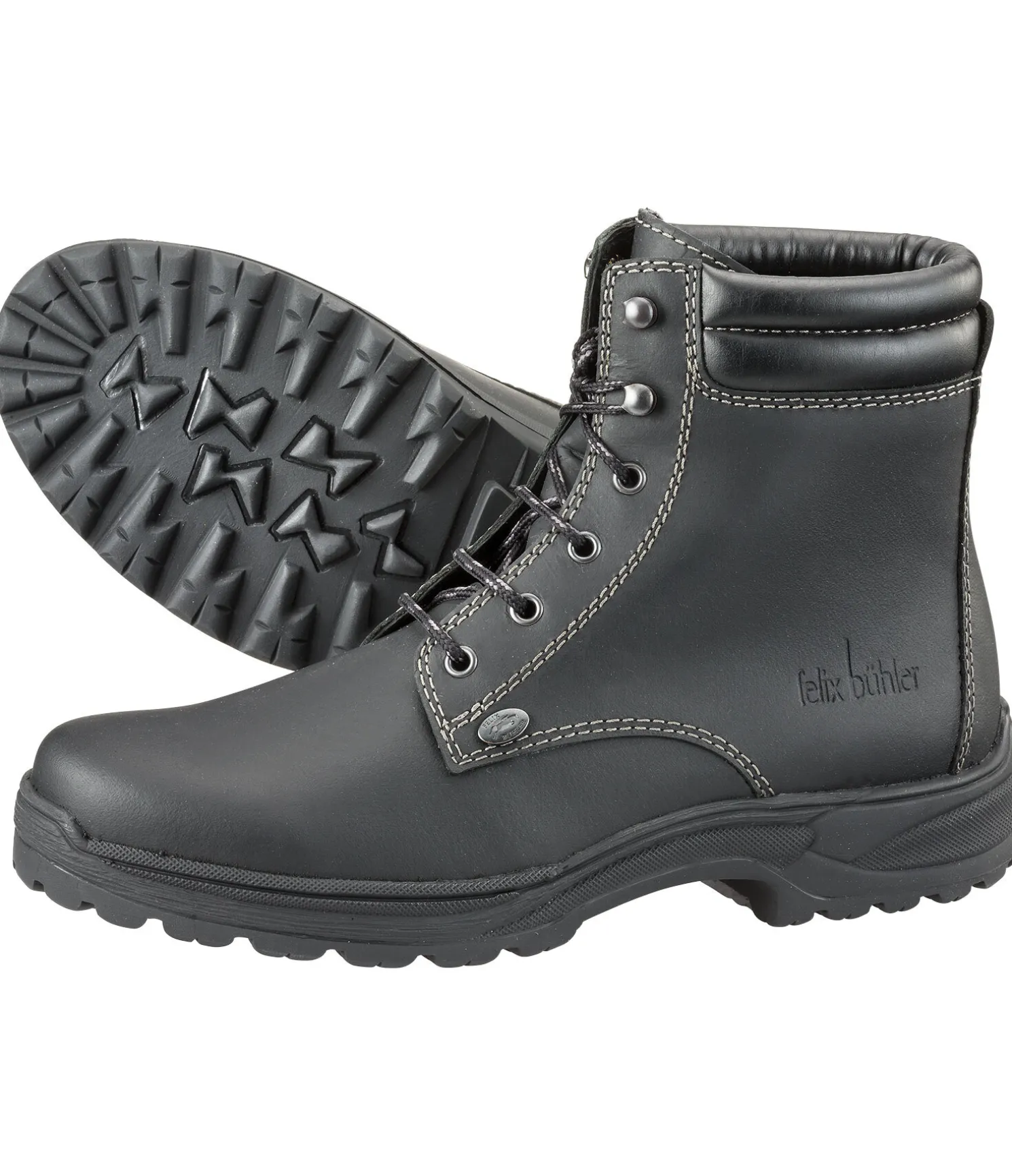 Chaussures d’écurie et d’équitation. Cuir gras résistant haut de gamme. Rembourrage doux à la cheville. Assise plantaire souple pour un confort optimal. Doublure intérieure en matière respirante (100 % polyester). Semelle crantée en caoutchouc solide et talon cavalier pour une adhérence optimale sur les sols glissants et dans les étriers. Semelle intérieure amortissante et amovible. Laçage rapide et pratique pour un enfilage et retrait sans difficulté. Fabriquées au Portugal.