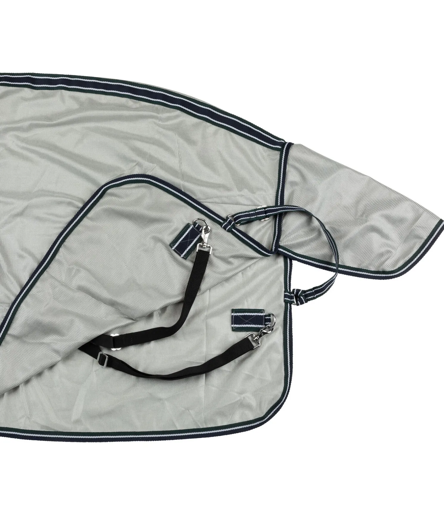 Chemise légère innovante pour protéger contre les insectes avec couvre-cou réglable par pattes auto-agrippantes. Plis d’aisance aux épaules et empiècement élastique au niveau du garrot assurant une liberté de mouvement maximale. Couvre-cou confortable avec pattes auto-agrippantes élastiques pour un ajustement optimal et boucle élastique auto-agrippante pour la fixation au licol. Double fermeture de poitrail avec crochets en T, doublure intérieure satinée avec motif à carreaux au niveau des épaules, de la queue et de la crinière, pour éviter la casse de crins et maintenir la robe brillante. Rabat ventral avec sursangles élastiques réglables, rabat de queue, courroie de queue élastique et anneaux permettant de fixer des courroies de cuisses. 100 % polyester.