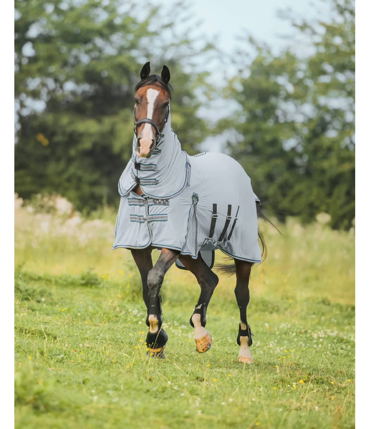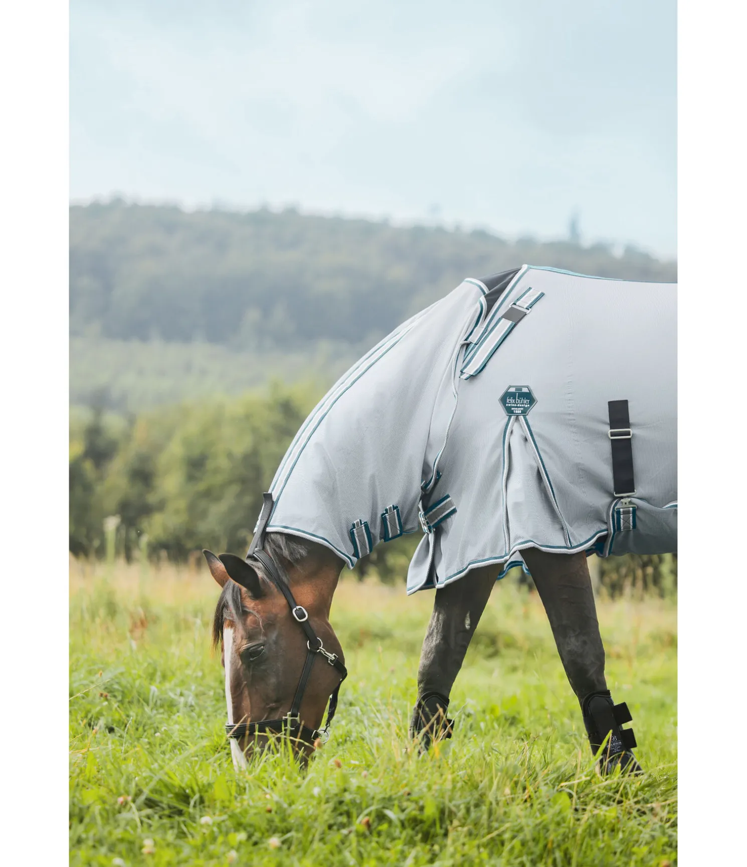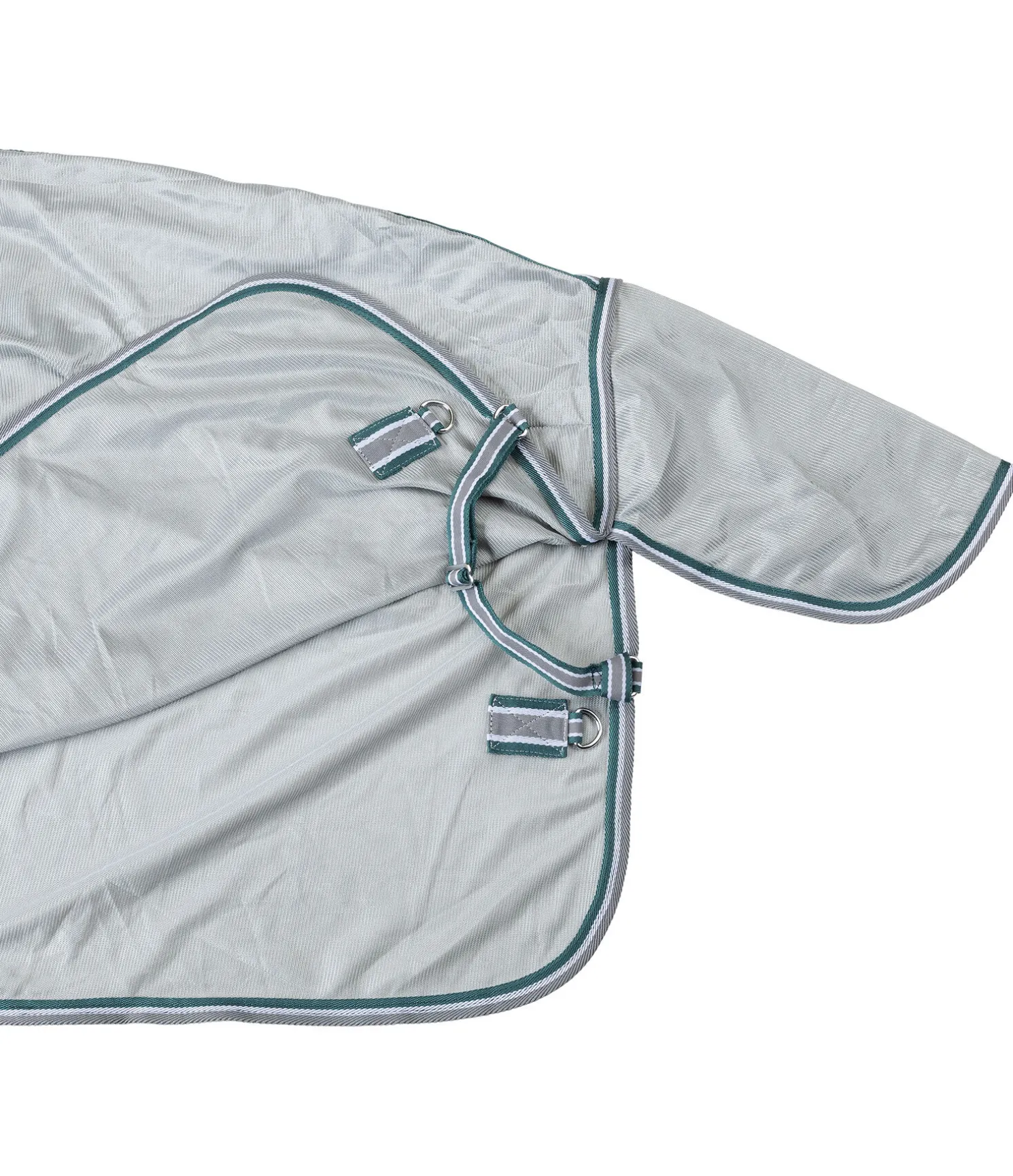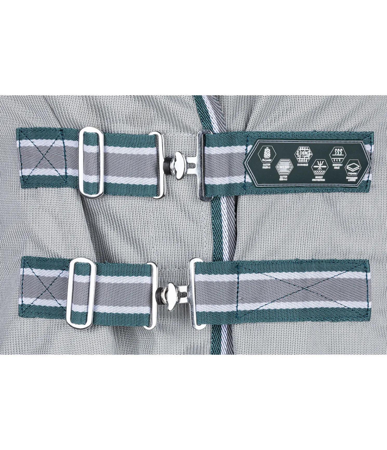 Chemise légère innovante pour protéger contre les insectes avec couvre-cou réglable par pattes auto-agrippantes. Plis d’aisance aux épaules et empiècement élastique au niveau du garrot assurant une liberté de mouvement maximale. Couvre-cou confortable avec pattes auto-agrippantes élastiques pour un ajustement optimal et boucle élastique auto-agrippante pour la fixation au licol. Double fermeture de poitrail avec crochets en T, doublure intérieure satinée avec motif à carreaux au niveau des épaules, de la queue et de la crinière, pour éviter la casse de crins et maintenir la robe brillante. Rabat ventral avec sursangles élastiques réglables, rabat de queue, courroie de queue élastique et anneaux permettant de fixer des courroies de cuisses. 100 % polyester.