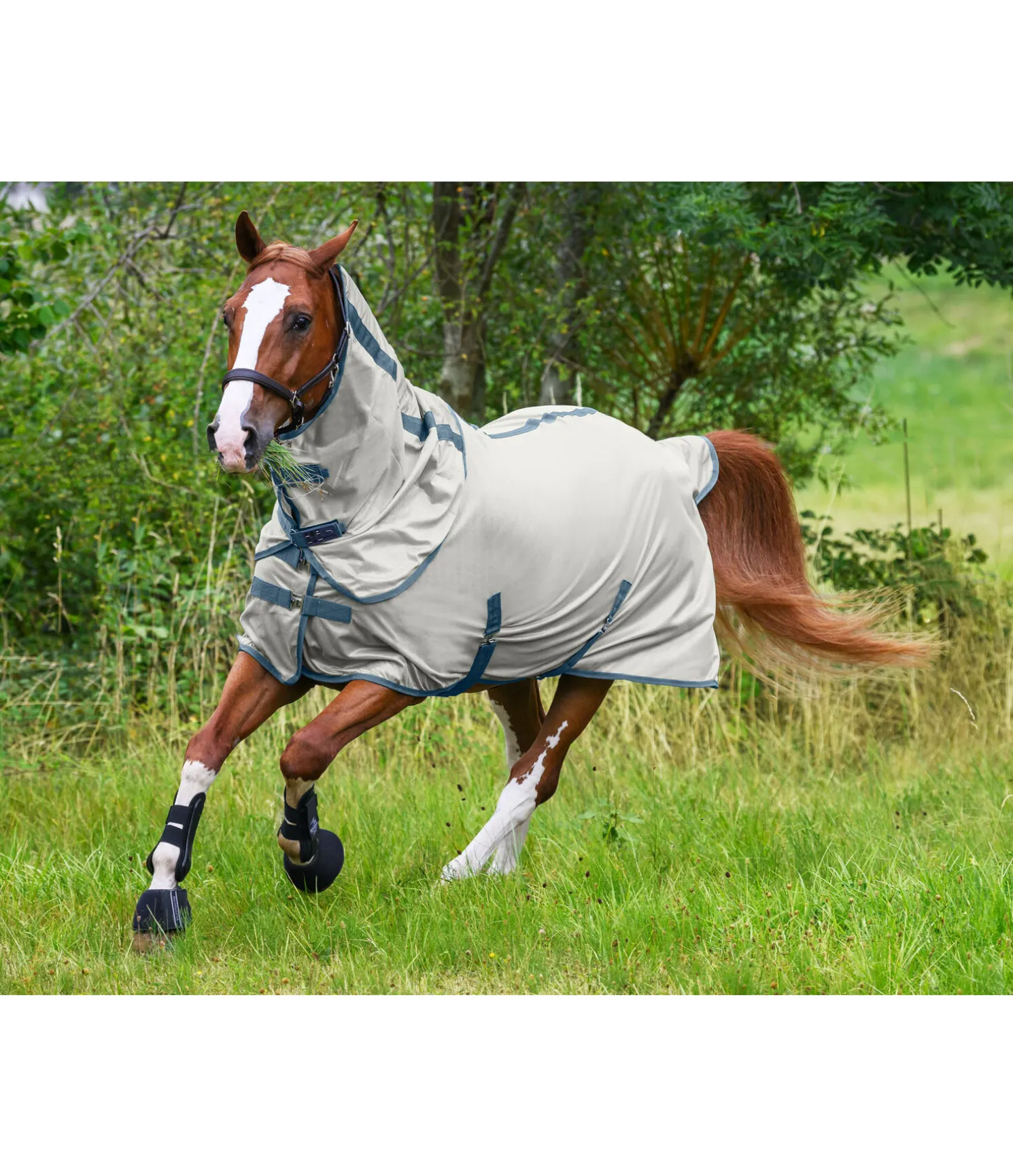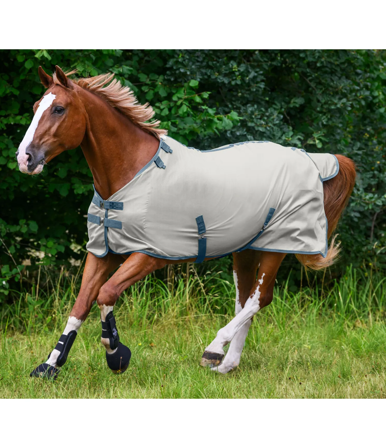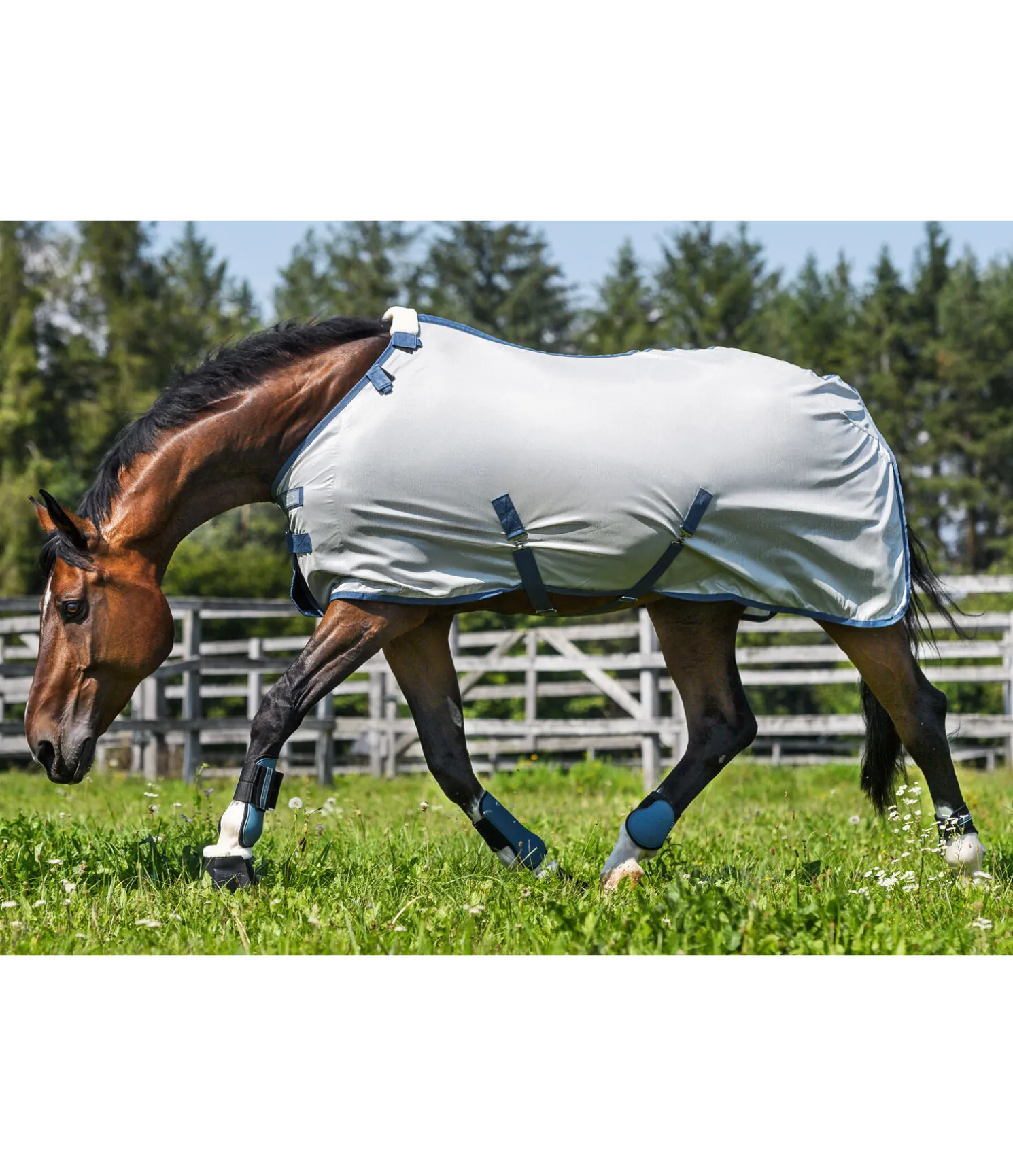 Chemise de protection contre les insectes en tissu à mailles serrées. Combinable avec le couvre-cou anti-mouches 422 413 grâce à un système de pattes auto-agrippantes pratique. Double fermeture de poitrail avec crochets en T recouverts par une patte auto-agrippante. Sursangles croisées réglables, rabat de queue et courroie de queue. Pad de garrot en polaire douce et une doublure lisse satinée au niveau des épaules et de la queue, pour éviter la casse de crins et maintenir la robe brillante. 100 % polyester.