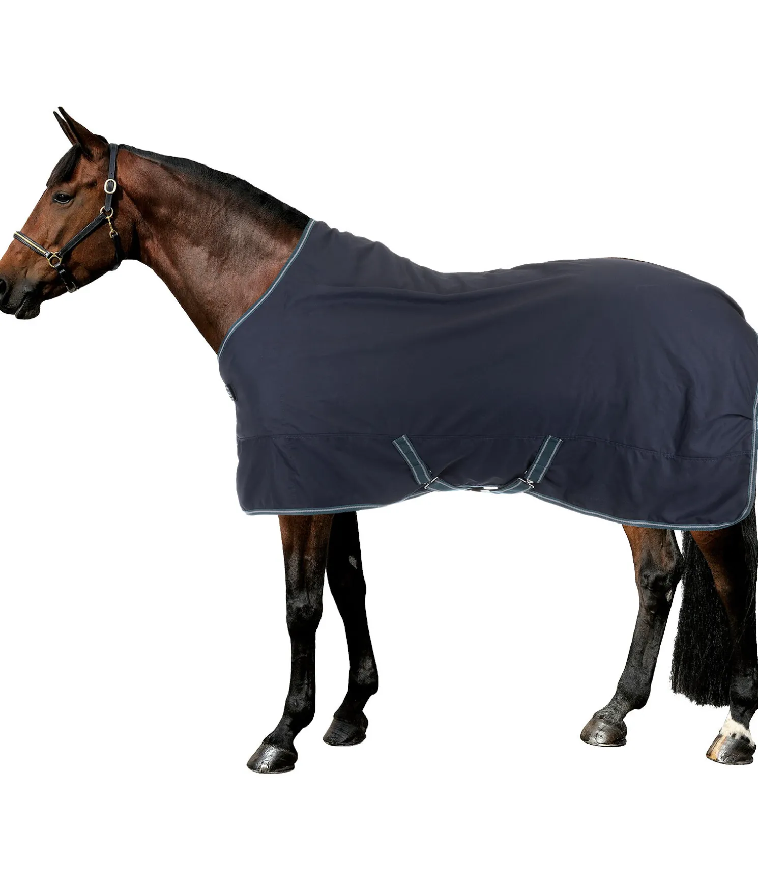 Chemise d’écurie coupe-vent, légère et très respirante pour les fraîches nuits et journées de mi-saison (300 deniers). Doublure lisse protégeant la robe au niveau du poitrail et des épaules. Fermeture de poitrail avec crochet en T, sursangles croisées et courroie de queue réglable. 100 % polyester.