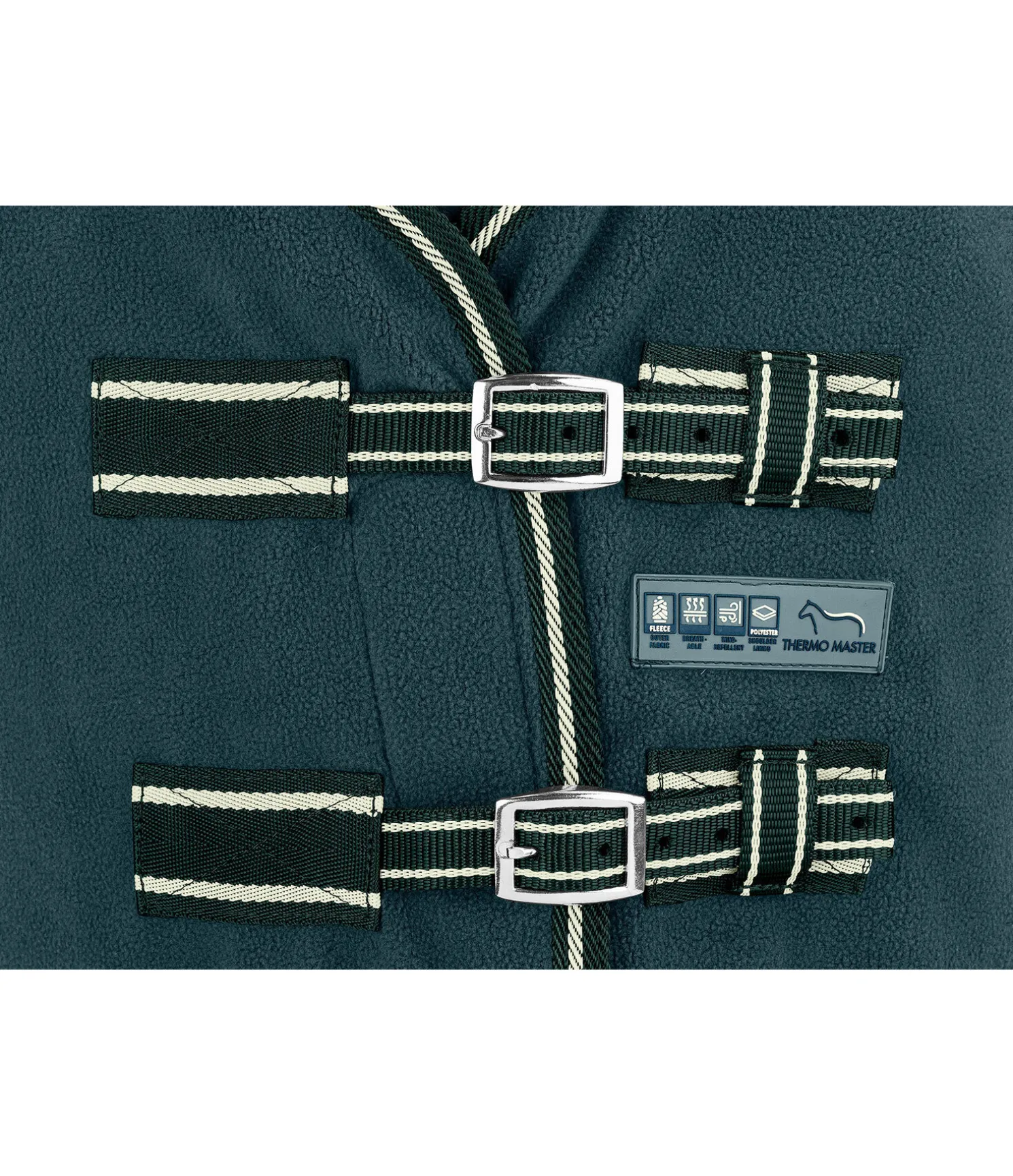 Chemise séchante conçue en polaire anti-bouloche respirante de qualité supérieure. Excellent rapport qualité-prix. Évacue efficacement l’humidité du corps du cheval. Avec double fermeture de poitrail, sursangles croisées réglables, rembourrage en polaire au garrot, doublure en polyester lisse au niveau des épaules. Courroie de queue. 100 % polyester.