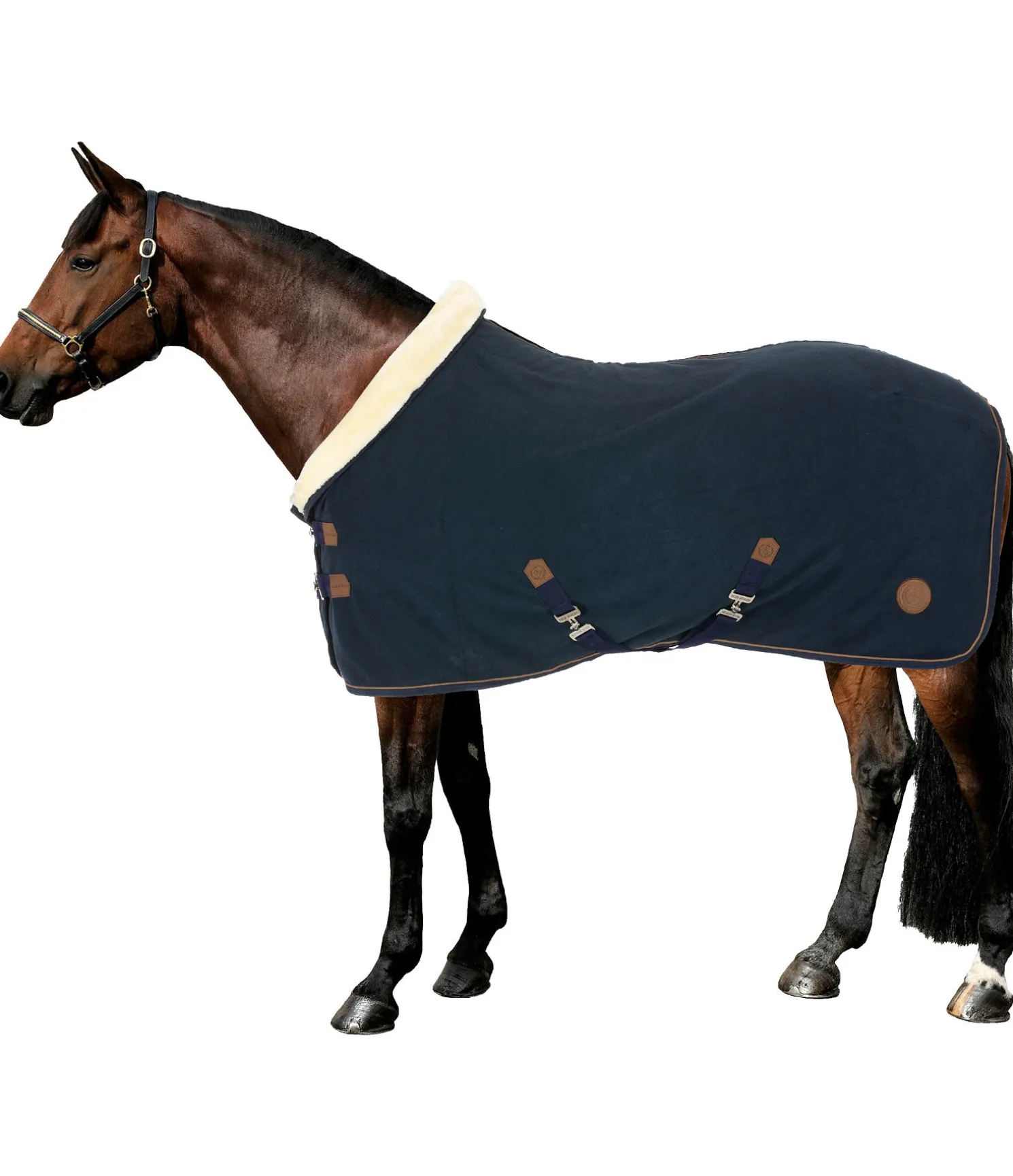 Jolie chemise séchante avec col en polaire Teddy douce. Doublure lisse avec matelassage à losanges pour protéger la robe. Passepoil en synthétique et badge avec logo embossé. Double fermeture de poitrail avec crochets en T. Sursangles croisées réglables et courroie de queue. 100 % polyester.