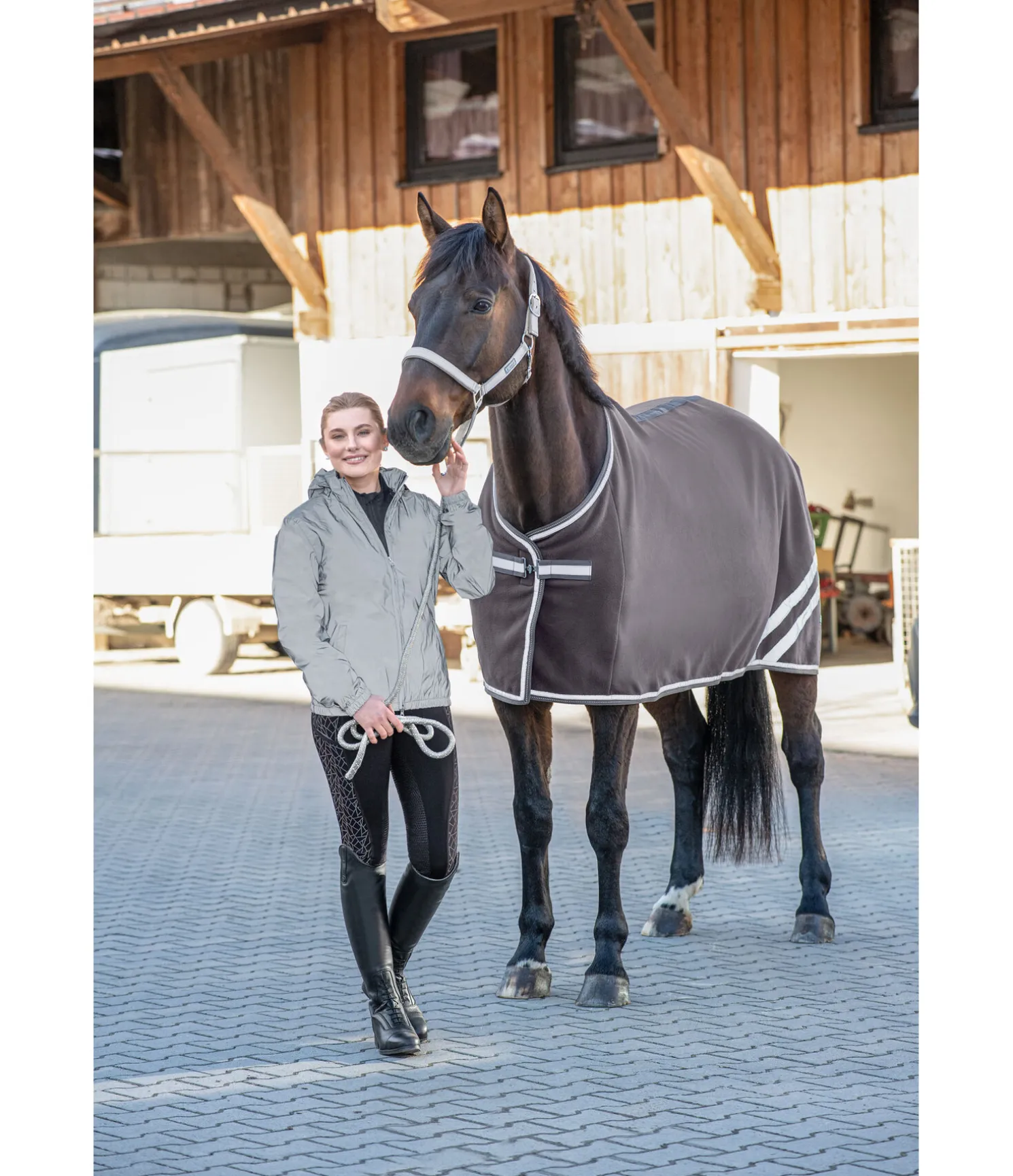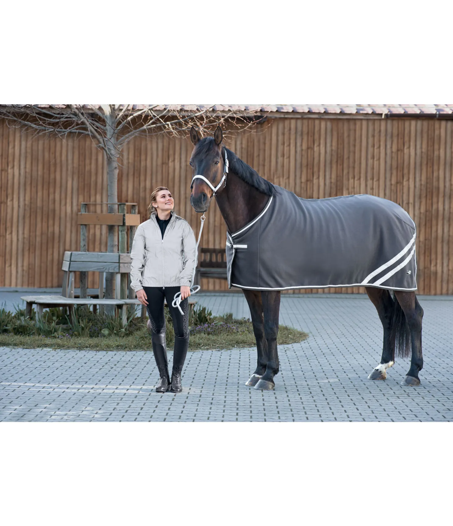 Chemise séchante en polaire douce et chaude. Fermeture de poitrail dotée d’une bande réfléchissante avec crochet en T et patte auto-agrippante. Bandes réfléchissantes cousues de chaque côté. Rembourrage en polaire douce au garrot. Doublure lisse protégeant la robe au niveau des épaules et du poitrail pour éviter les irritations dues aux frottements. Matière respirante. 100 % polyester.