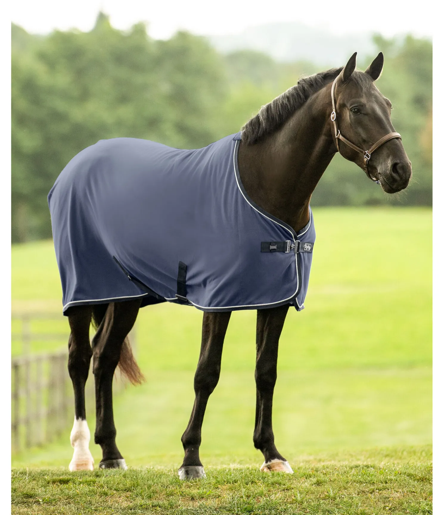 Chemise séchante légère et respirante. En jersey lisse empêchant la poussière de s’accrocher. Intérieur molletonné en polaire absorbant l’humidité. Passepoil avec logo imprimé. Doublure lisse protégeant la robe au niveau des épaules et du poitrail. Fermeture de poitrail avec crochet en T et patte auto-agrippante supplémentaire pour un maintien sûr. Sursangles croisées. Courroie de queue réglable et pad de garrot moelleux. 100 % polyester.