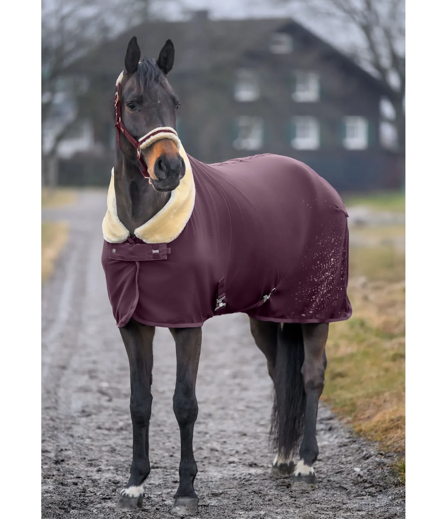 Chemise séchante chaude et douce avec col rembourré en polaire Teddy. Joli imprimé scintillant sur la partie arrière gauche de la couverture. Doublure lisse protégeant la robe au niveau des épaules et du poitrail, pour éviter les irritations dues aux frottements. Sursangles croisées amovibles de chaque côté. Fermeture de poitrail dissimulée avec crochet en T. Courroie de queue réglable incluse. Bouclerie argentée pour la couleur S et GA et rose doré pour la couleur NV. 100 % polyester.