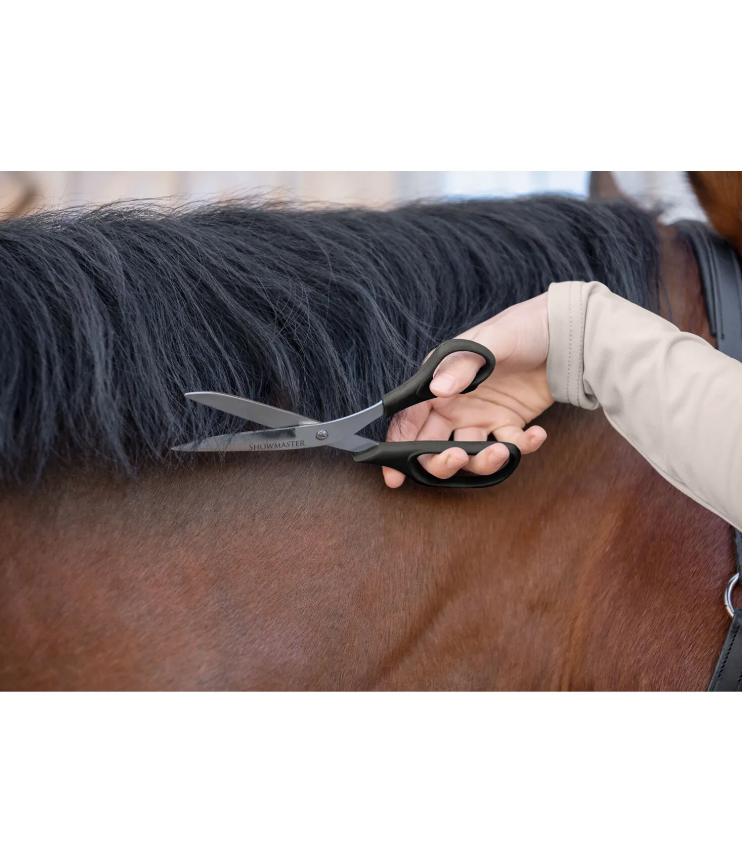 Ciseaux pour couper la queue et la crinière. Manche asymétrique en plastique pour une meilleure prise en main.