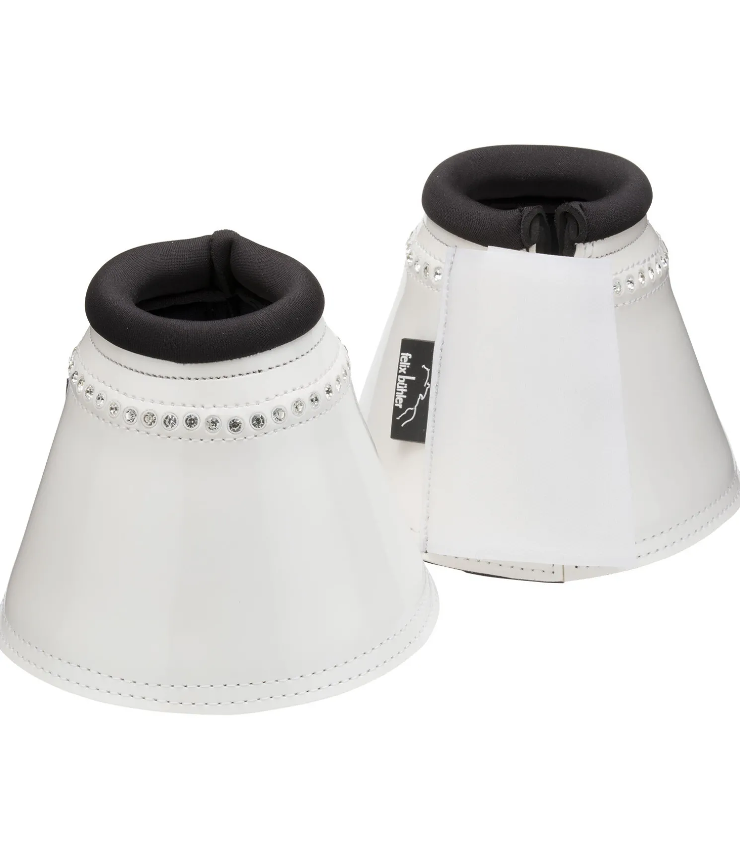 Cloches élégantes assorties aux guêtres Felix Bühler Shine. En cuir synthétique à l’aspect verni. Avec strass. Doublure intérieure en caoutchouc chloroprène. Vendues par paire.