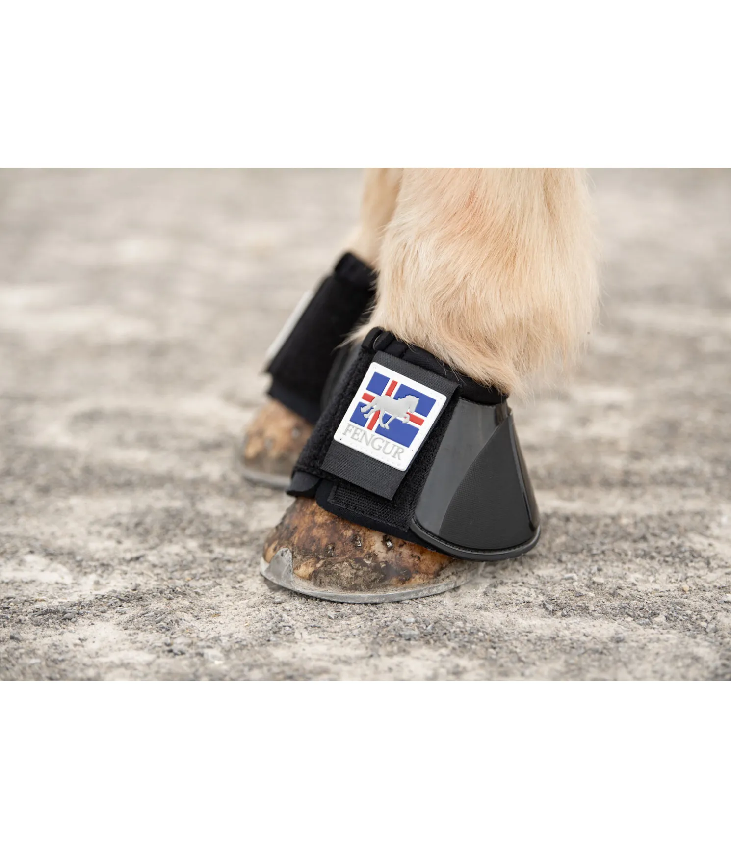Cloches de protection en TPU robuste pour protéger le sabot lors de l’entraînement quotidien. Avec arrêtoir pour empêcher la cloche de tourner. Badge logo islandais sur la patte auto-agrippante.