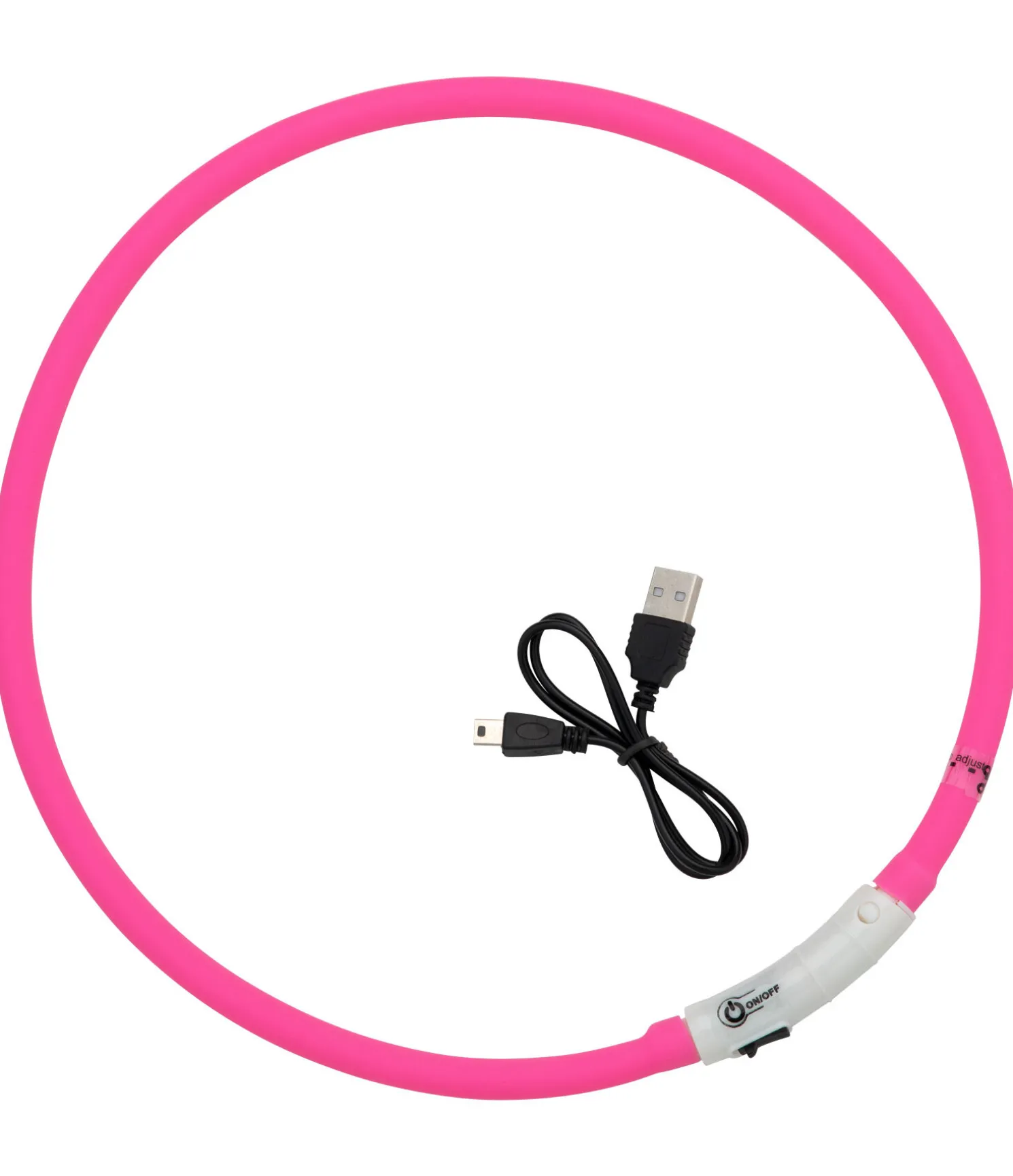 Collier lumineux réglable. Batterie rechargeable (USB). Lumière clignotante ou fixe. 70 cm.
