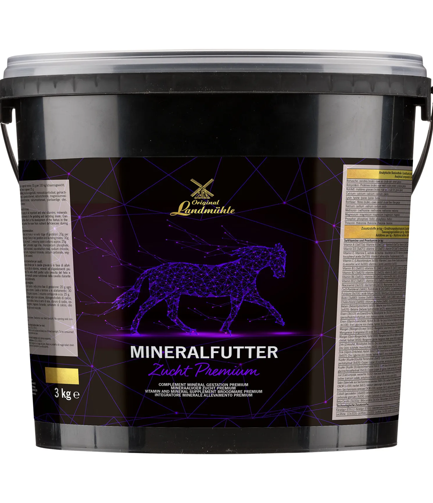Complément optimal pour couvrir les besoins en vitamines, minéraux et oligo-éléments importants et vitaux des juments gestantes et allaitantes. L’apport en minéraux pour la jument doit être particulièrement surveillé pendant la gestation car des carences peuvent avoir des effets non seulement sur la jument, mais aussi sur le foetus. La croissance du poulain nécessite un apport important en protéines et en calcium afin de permettre le développement des muscles, des os et des organes. Pendant le dernier trimestre de gestation, un poulain multiplie son poids par sept ; en conséquence, les besoins en énergie, en protéines et en nutriments de la jument augmentent fortement. Le cuivre joue un rôle important dans la croissance du poulain. Si cet oligo-élément n’est pas donné en quantité suffisante à la jument gestante, cela peut engendrer des perturbations dans la formation du squelette du poulain. Celles-ci peuvent être la cause d’une ostéochondrite à un jeune âge pouvant nécessiter une opération chirurgicale. Le sélénium joue également un rôle clé : cet oligo-élément assure la vitalité du poulain. Les poulains ayant une carence en sélénium souffrent souvent dès la naissance de maladies musculaires et ne tètent que peu ou pas du tout, ce qui peut mener le jeune poulain en soins intensifs. Après la mise bas, les besoins en énergie et en protéines de la jument augmentent de nouveau pour assurer une production suffisante de lait pendant la période de lactation. En effet, le lait est l’unique et donc la plus importante source de nutriments pour le poulain nouveau-né. Nous avons volontairement renoncé aux céréales et à la mélasse dans notre recette afin que cet aliment complémentaire convienne à toutes les races de chevaux. Cet aliment est sous forme de granulés pour une acceptation alimentaire optimale.