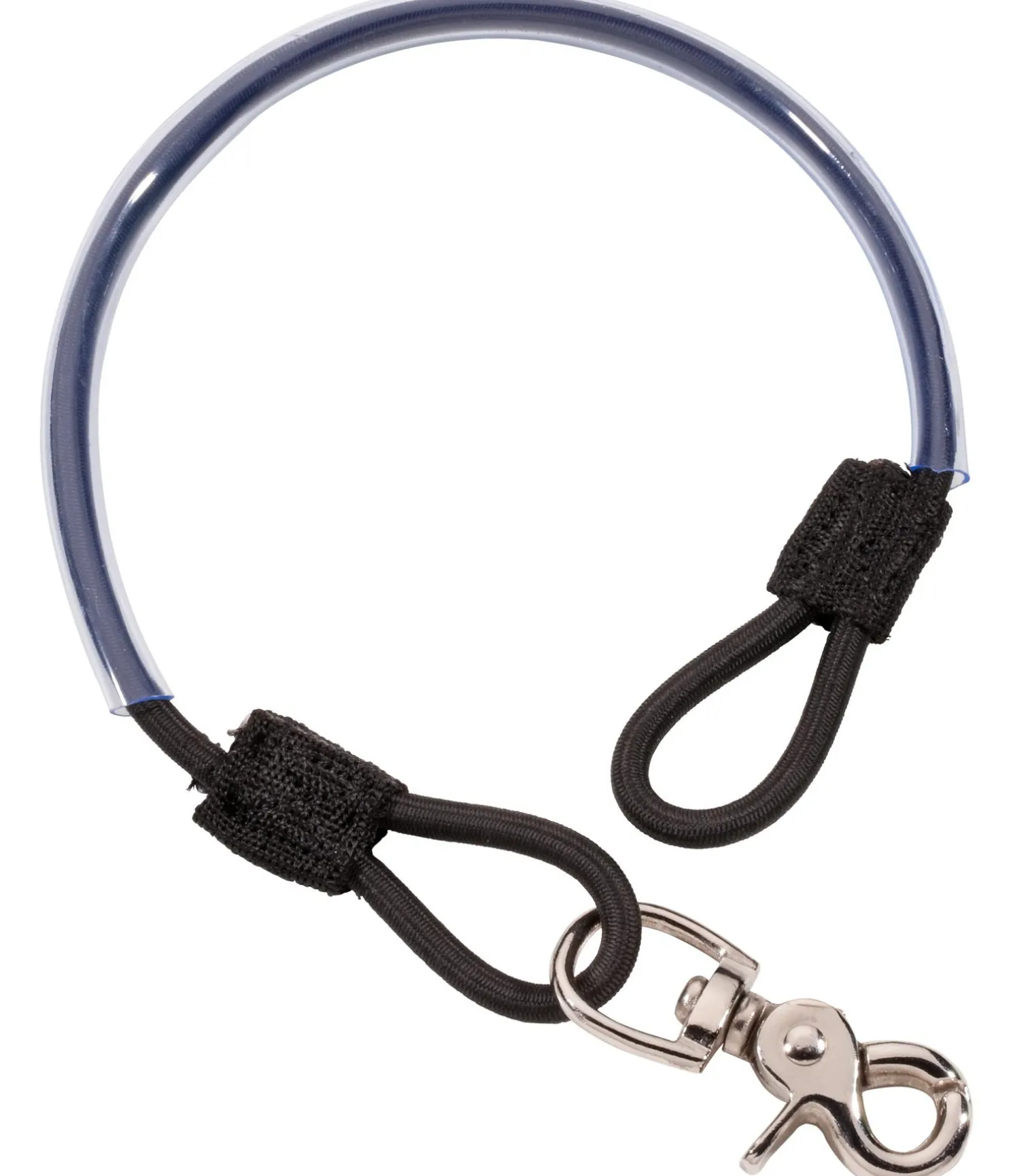 Courroie de queue avec revêtement PVC équipée d’un mousqueton en métal pour la fixer à la couverture. Facilite le nettoyage de la courroie de queue.
