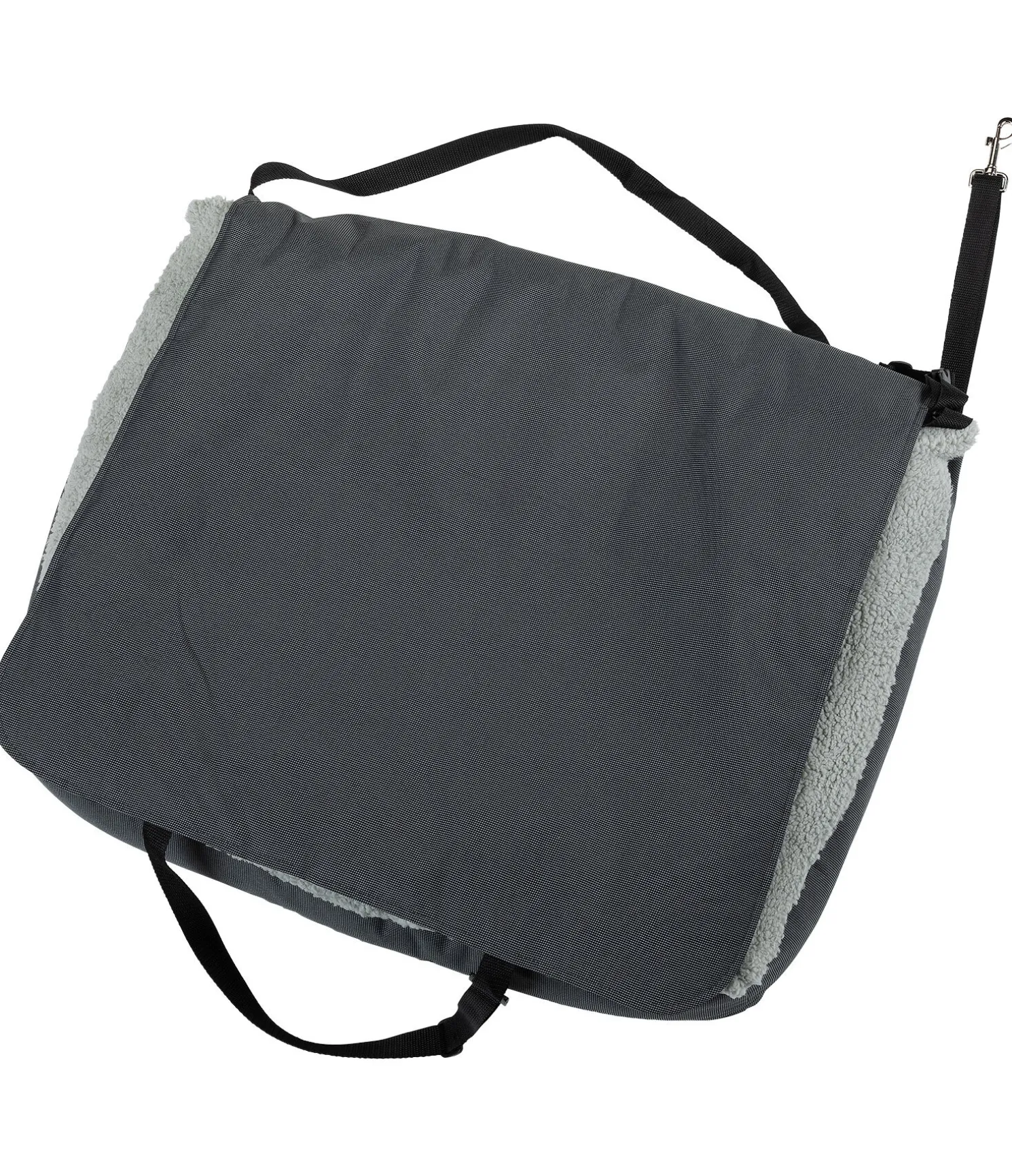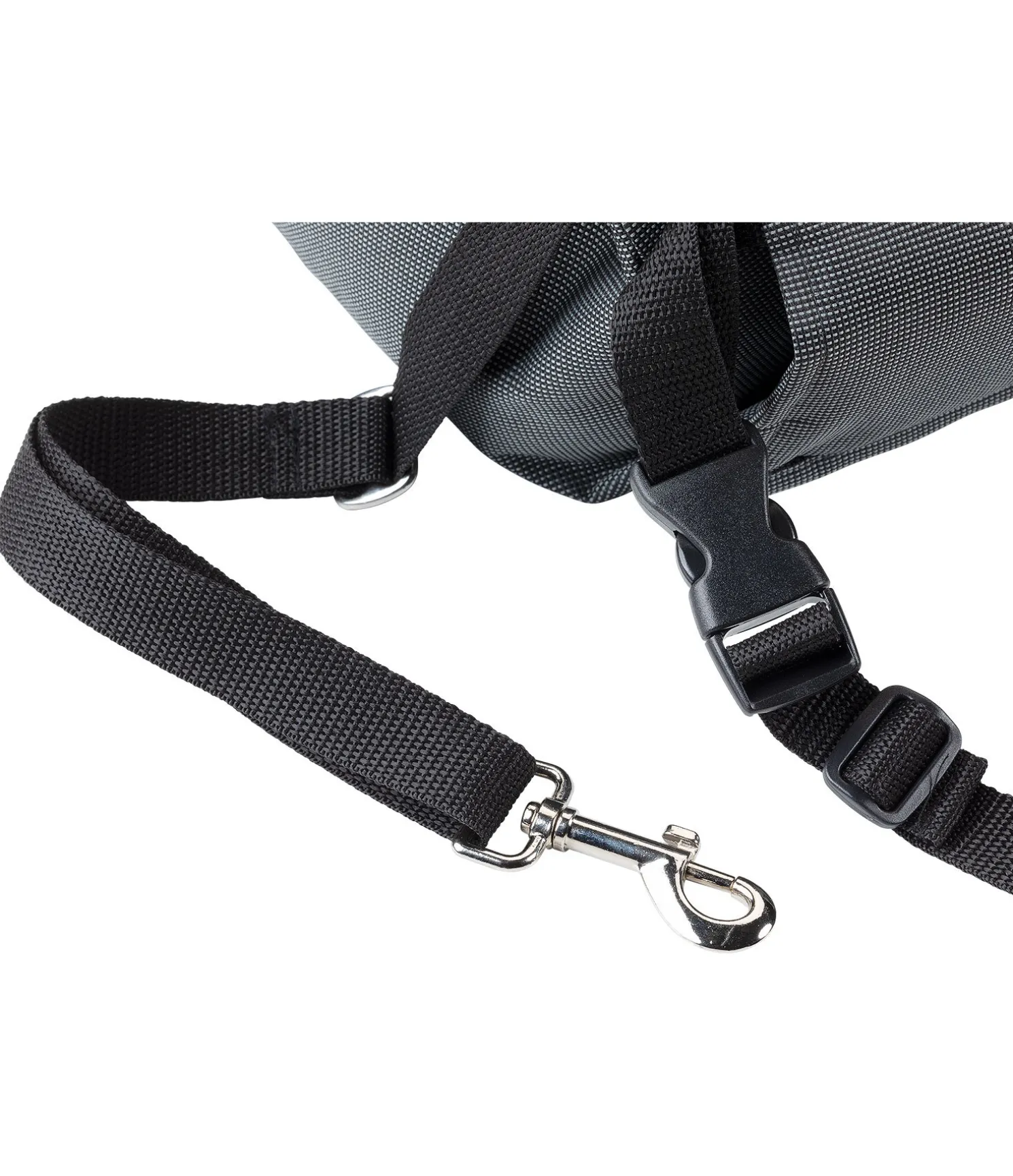 Coussin pour chien pratique pour les trajets en voiture. Il suffit de le fixer au dossier et à l’appui-tête du siège passager ou à la banquette arrière à l’aide des deux sangles et des clips de fixation. La housse de dossier intégrée protège l’intérieur de ton véhicule des poils et de la saleté et dispose d’une poche en filet pour ranger les accessoires. La surface de couchage douce et moelleuse a un bord légèrement surélevé pour y poser la tête ou s’y blottir. La laisse de sécurité avec mousqueton permet d’attacher le chien par son harnais au coussin. Nous recommandons toutefois d’attacher le chien en premier lieu avec un adaptateur de ceinture. Convient aux chiens de petite ou moyenne taille. Housse amovible et lavable en machine. Dimensions de la surface de couchage : 61 cm x 50 cm x 15 cm. 100 % polyester. Caractéristiques :