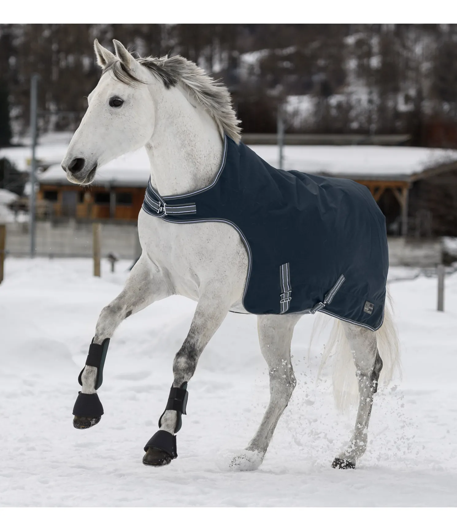 Pour une liberté de mouvement optimale : couverture de marcheur imperméable (3.000 mm) avec découpe au niveau de l’avant-main, en matière Ripstop 600 deniers avec garnissage 200g. Protège efficacement la zone des reins et les flancs du froid, de l’humidité et du vent. Idéale pour le marcheur et déplacements en main ainsi que pour longer. Fermeture de poitrail avec crochet en T et patte auto-agrippante supplémentaire, sursangles croisées réglables, rabat de queue et courroie de queue réglable. Doublure lisse protégeant la robe. 100 % polyester.