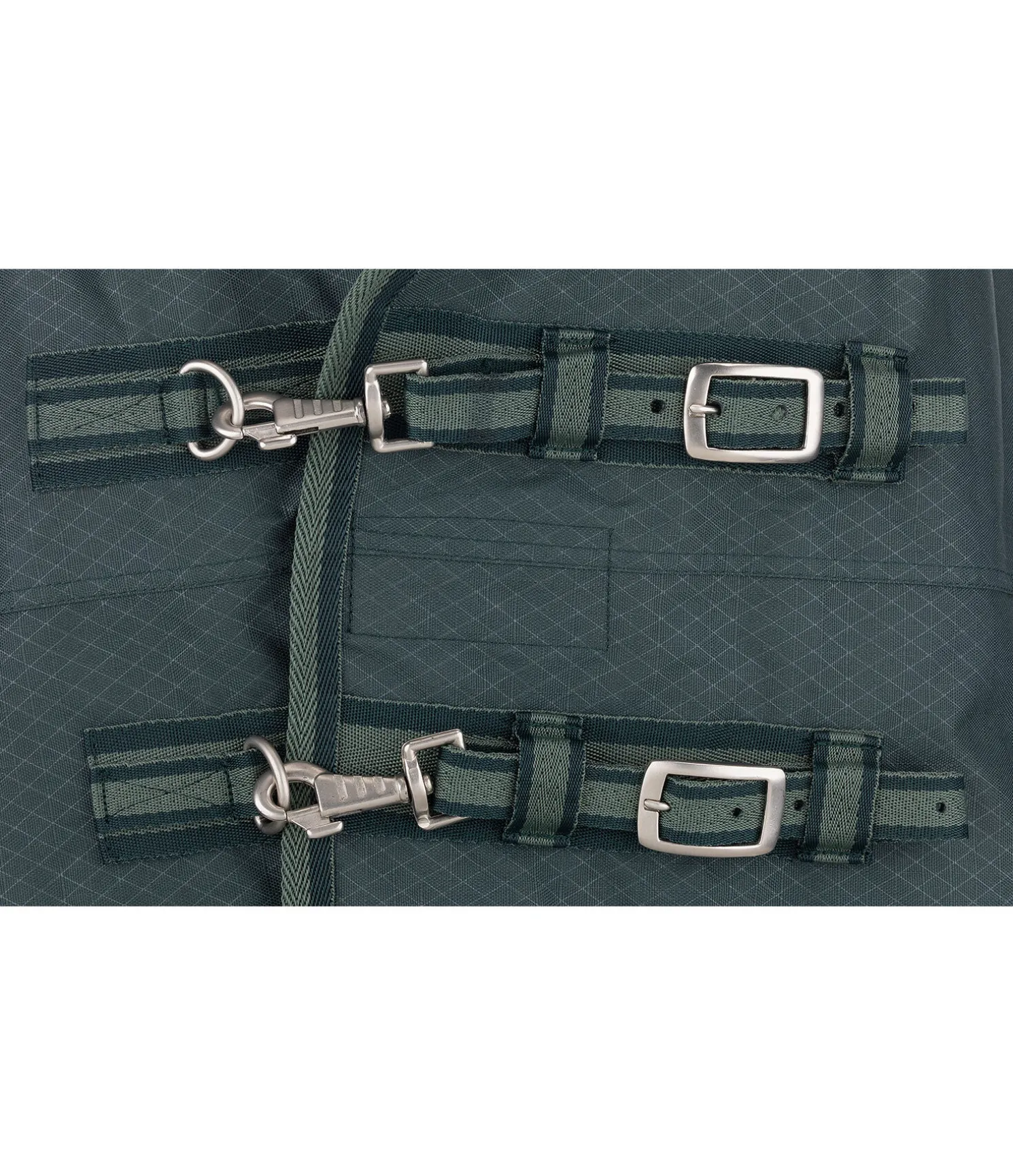 Couverture d’extérieur innovante dans une coupe Highneck, empêchant l’infiltration d’eau dans la zone des épaules et permettant d’éviter les pressions dans la zone du garrot. Coussins moelleux doublés de polaire de part et d’autre des épaules, permettant une répartition optimale des pressions lorsque le cheval baisse la tête. Matière Ripstop 600 deniers imperméable (colonne d’eau 3.000 mm) avec motifs en filigrane discrets. Garnissage 200g chaud. Doublure en polaire douce et doublure lisse protégeant la robe au niveau des épaules et du poitrail. Double fermeture de poitrail réglable avec mousquetons, anneaux en D et patte auto-agrippante supplémentaire, sursangles croisées réglables. Anneaux permettant la fixation de courroies de cuisses (non incluses), rabat de queue et courroie de queue réglable inclus. 100 % polyester.