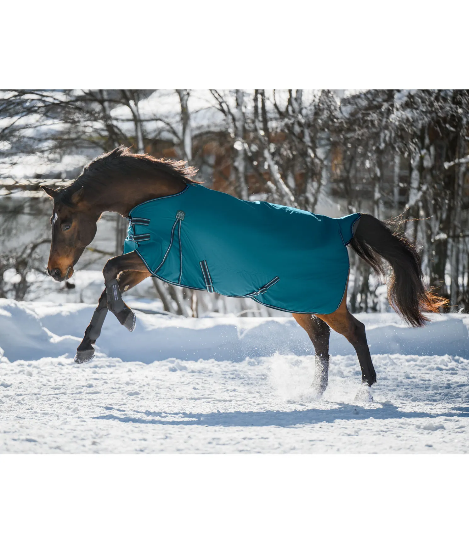 Couverture d’extérieur classique. Imperméable (3.000 mm). En matière Ripstop résistante 600 deniers avec garnissage 100g. Avec plis d’aisance pour une liberté de mouvement optimale, double fermeture de poitrail avec crochets en T et patte auto-agrippante supplémentaire, sursangles croisées réglables et rabat de queue. Anneaux permettant la fixation de courroies de cuisses (non incluses), courroie de queue réglable incluse. Pad de garrot permettant d’éviter les pressions et irritations dues aux frottements. Doublure lisse protégeant la robe. 100 % polyester.