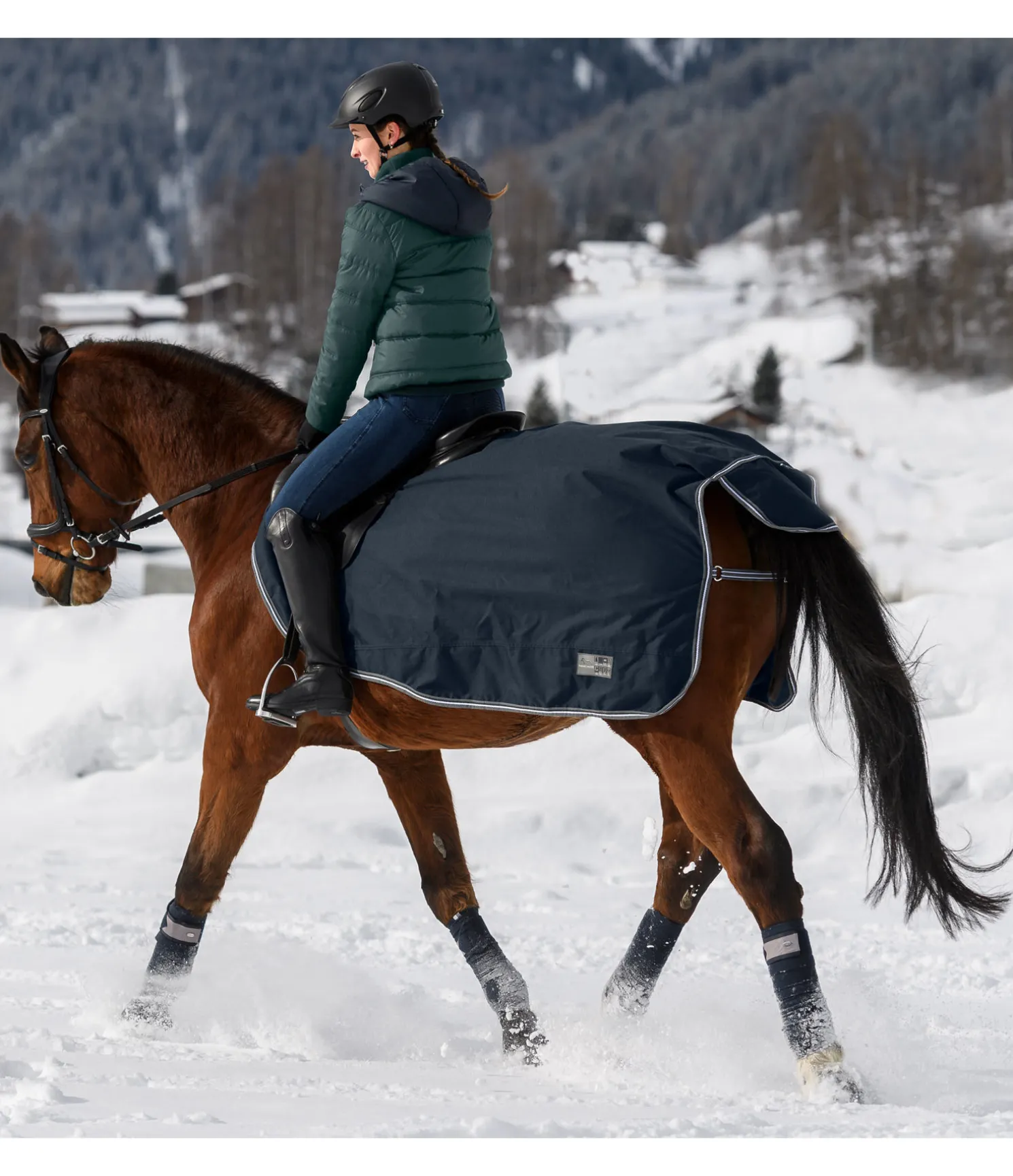 Couvre-reins imperméable (3.000 mm) et coupe-vent, en matière Ripstop 600 deniers, avec garnissage léger 50 g dans la zone des reins. Protège efficacement les reins et les flancs. Avec découpe pour selle anglaise. Large patte auto-agrippante au niveau du garrot pour une mise en place facile. Rabat de queue et courroie de queue réglable inclus. 100 % polyester.