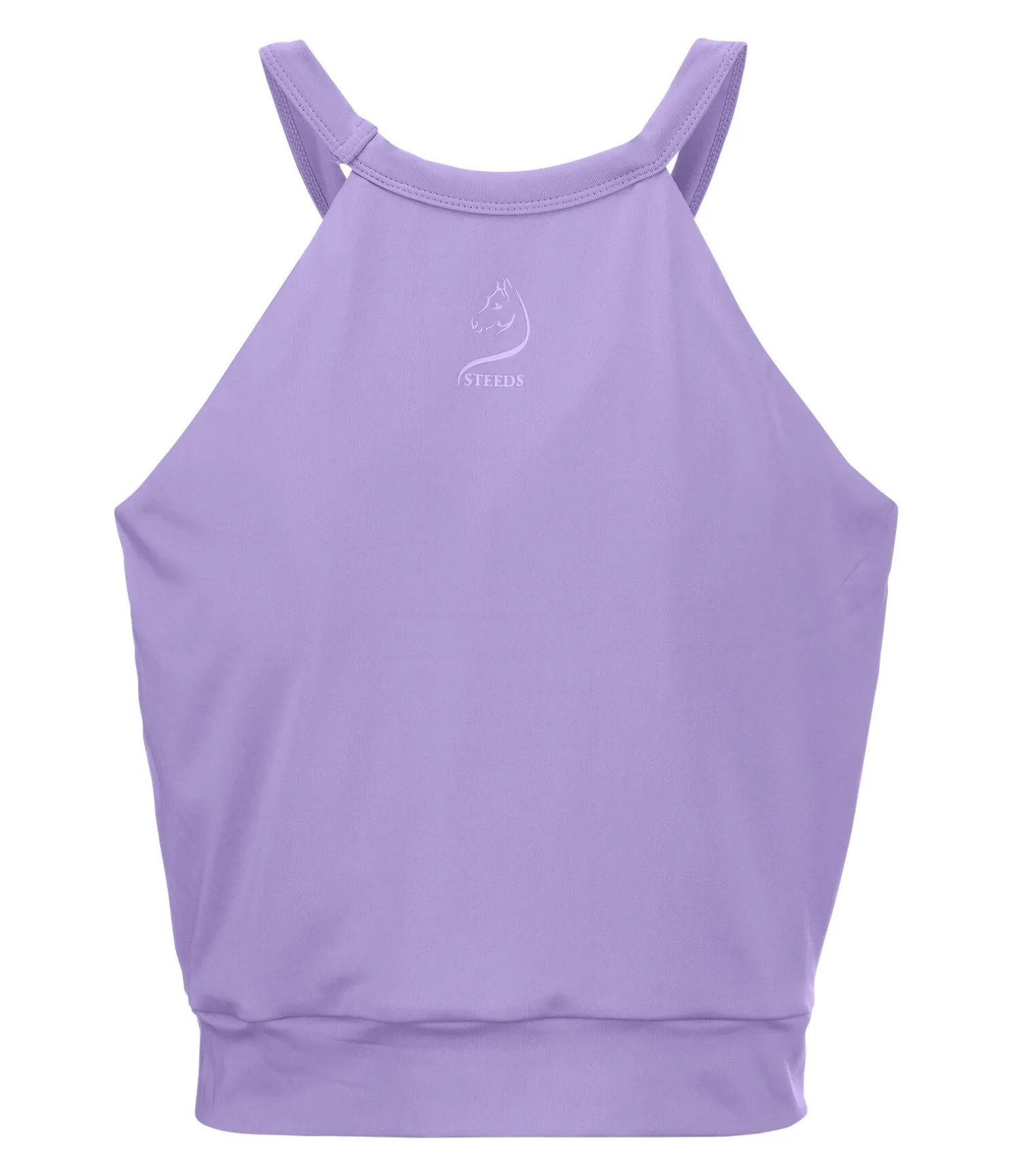 Crop top décontracté pour enfant en tissu technique, respirant et à séchage rapide. Imprimé avant et arrière et taille élastiquée. 88 % polyester, 12 % élasthanne.