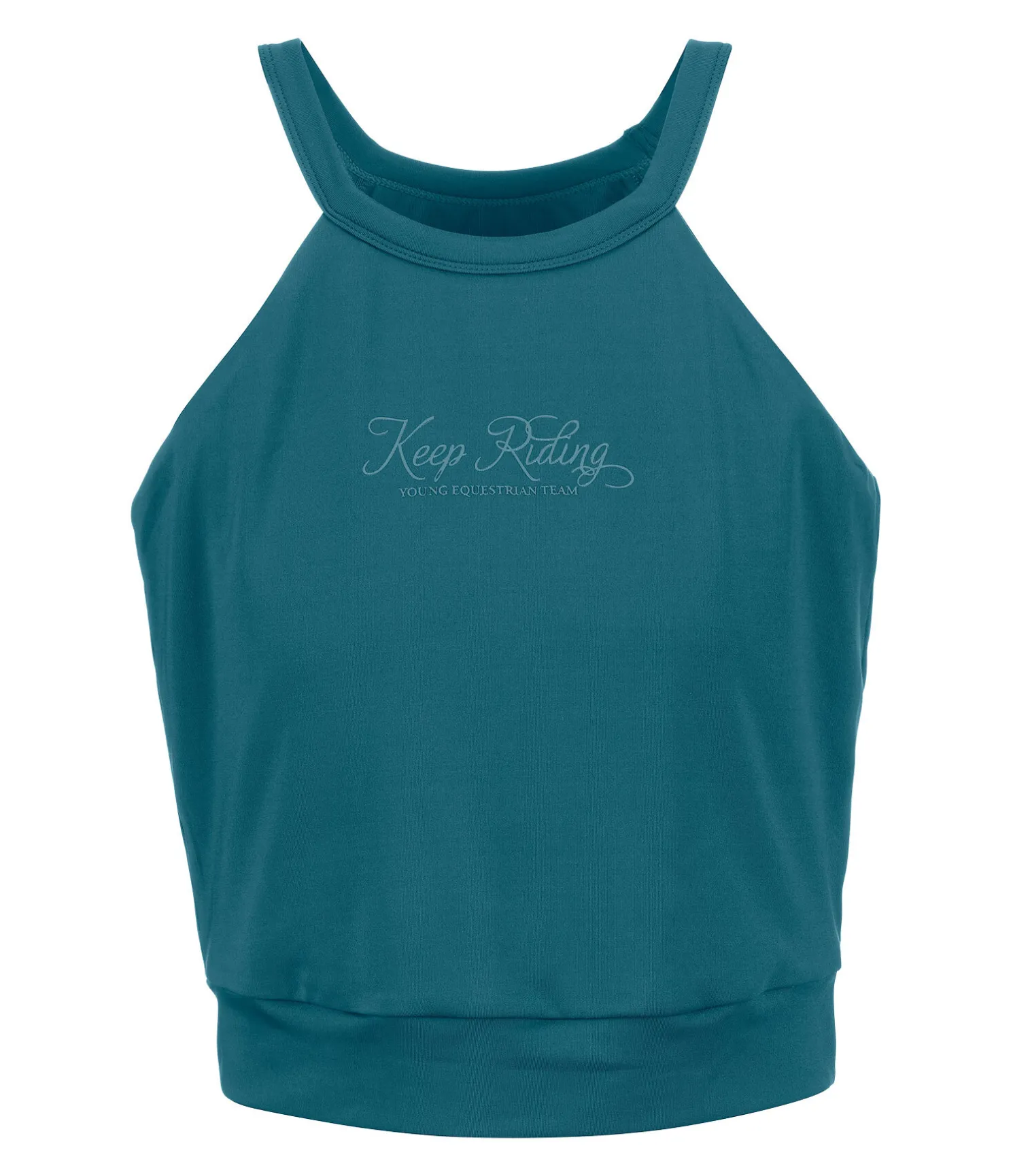 Crop top décontracté pour enfant en tissu technique, respirant et à séchage rapide. Imprimé avant et arrière et taille élastiquée. 88 % polyester, 12 % élasthanne.