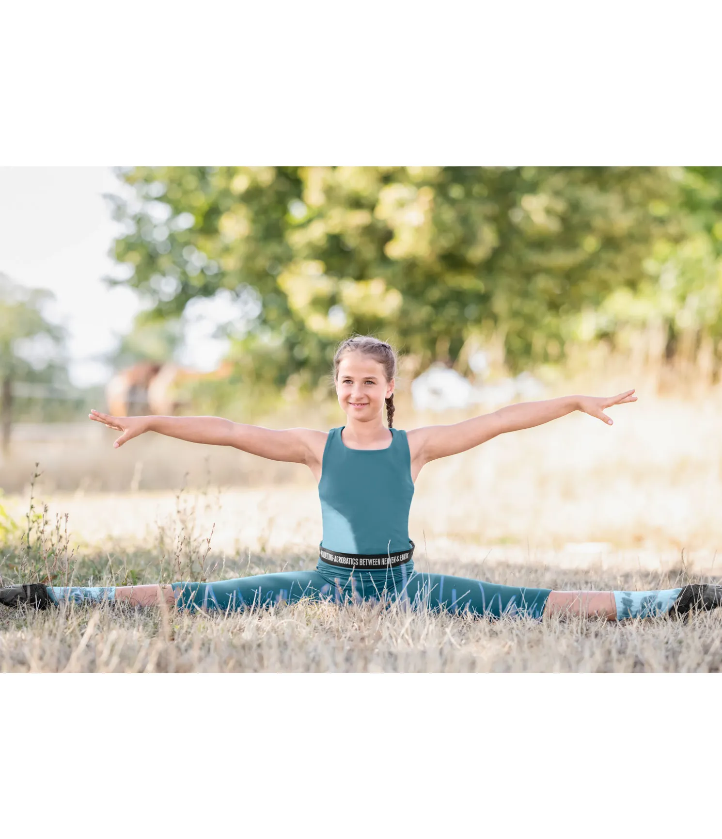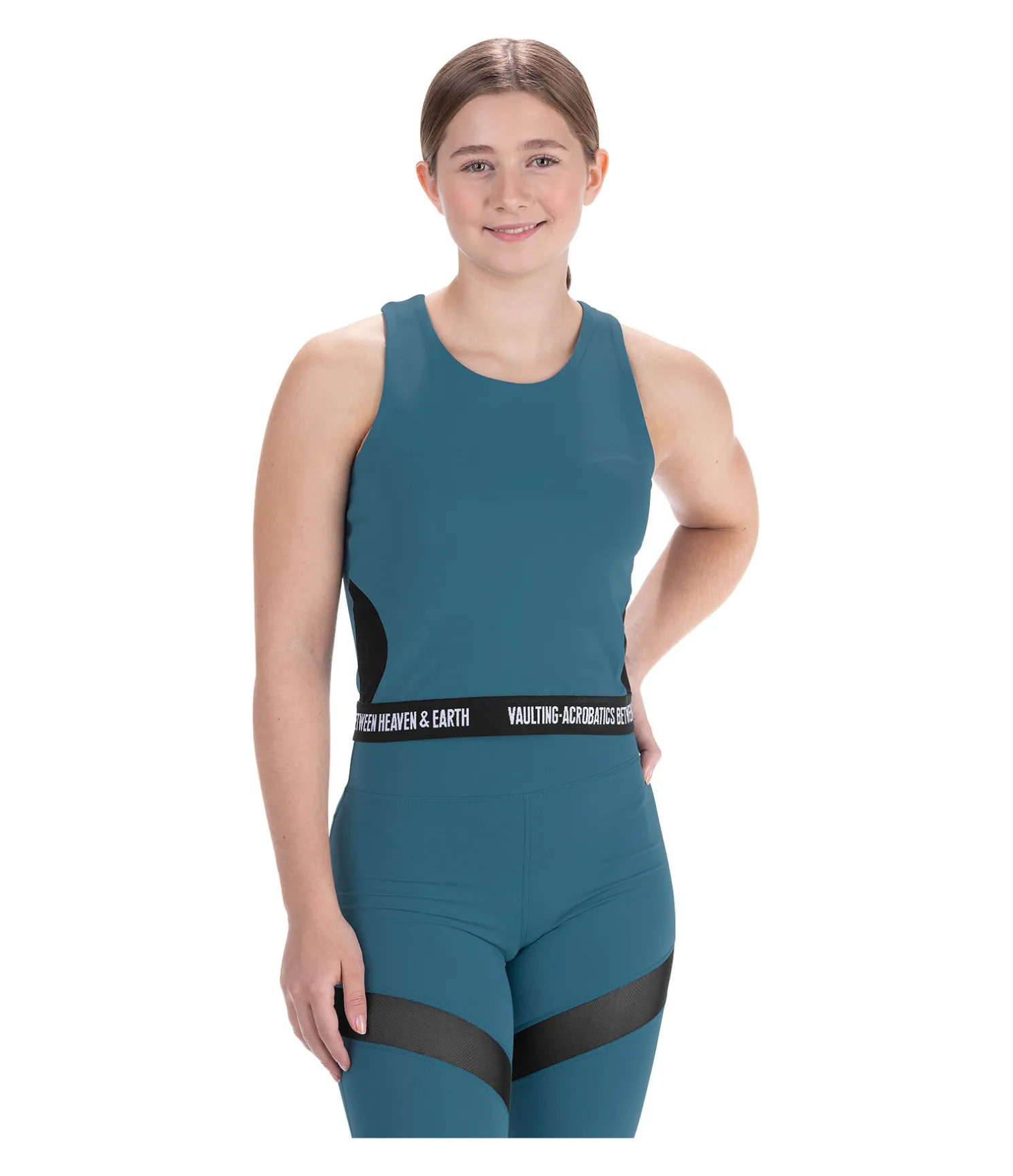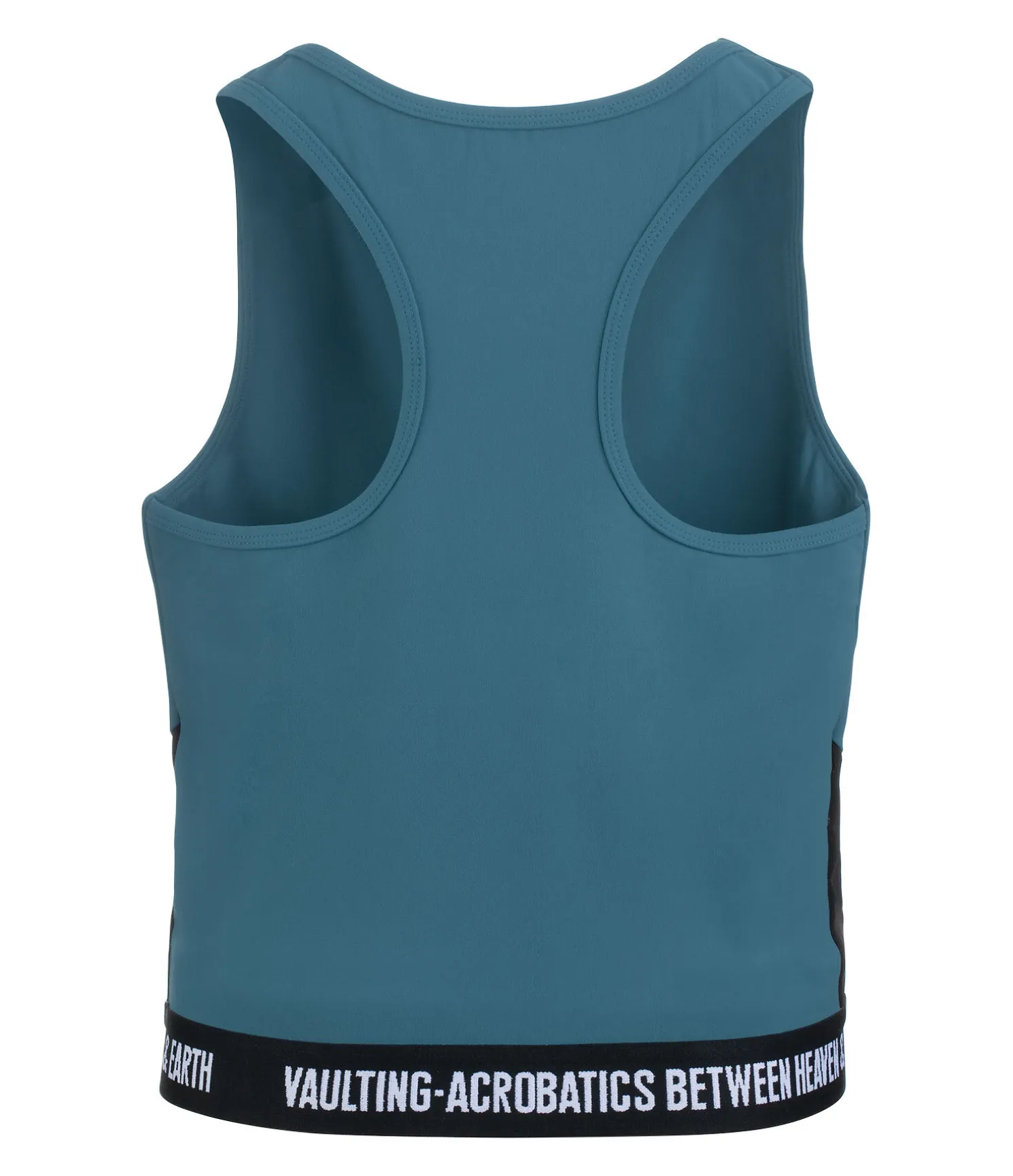 Débardeur avec larges bretelles et découpe au niveau des omoplates pour une bonne circulation de l’air. Look sportif. Bande élastiquée à la taille avec inscription brodée « Vaulting – Acrobatics between heaven & earth ». 88 % polyester, 12 % élasthanne (charbon chiné) et 78 % polyester, 22 % élasthanne (aquamarine).