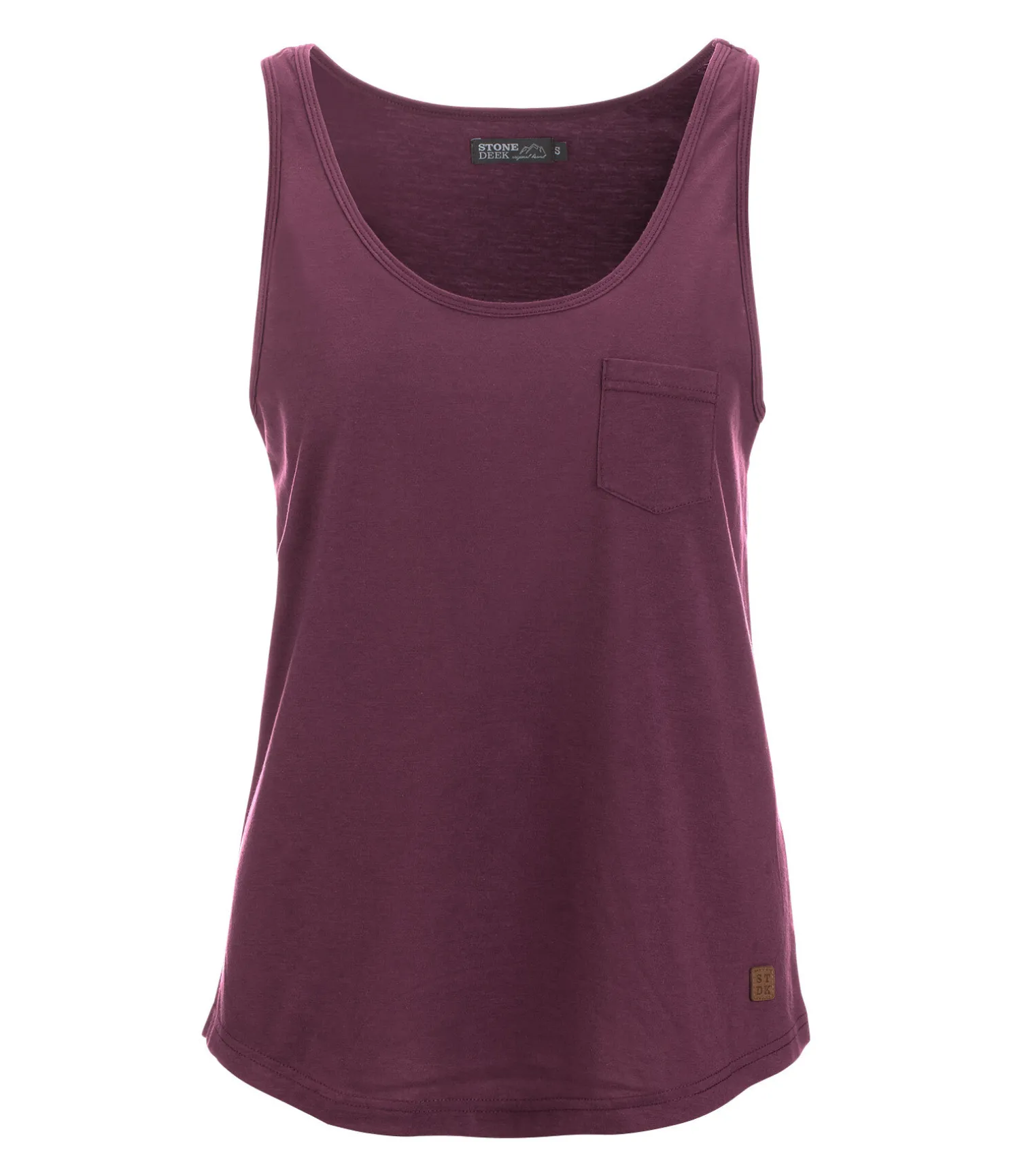 Débardeur ample avec poche sur la poitrine en jersey doux et léger. 15 % coton, 85 % polyester.