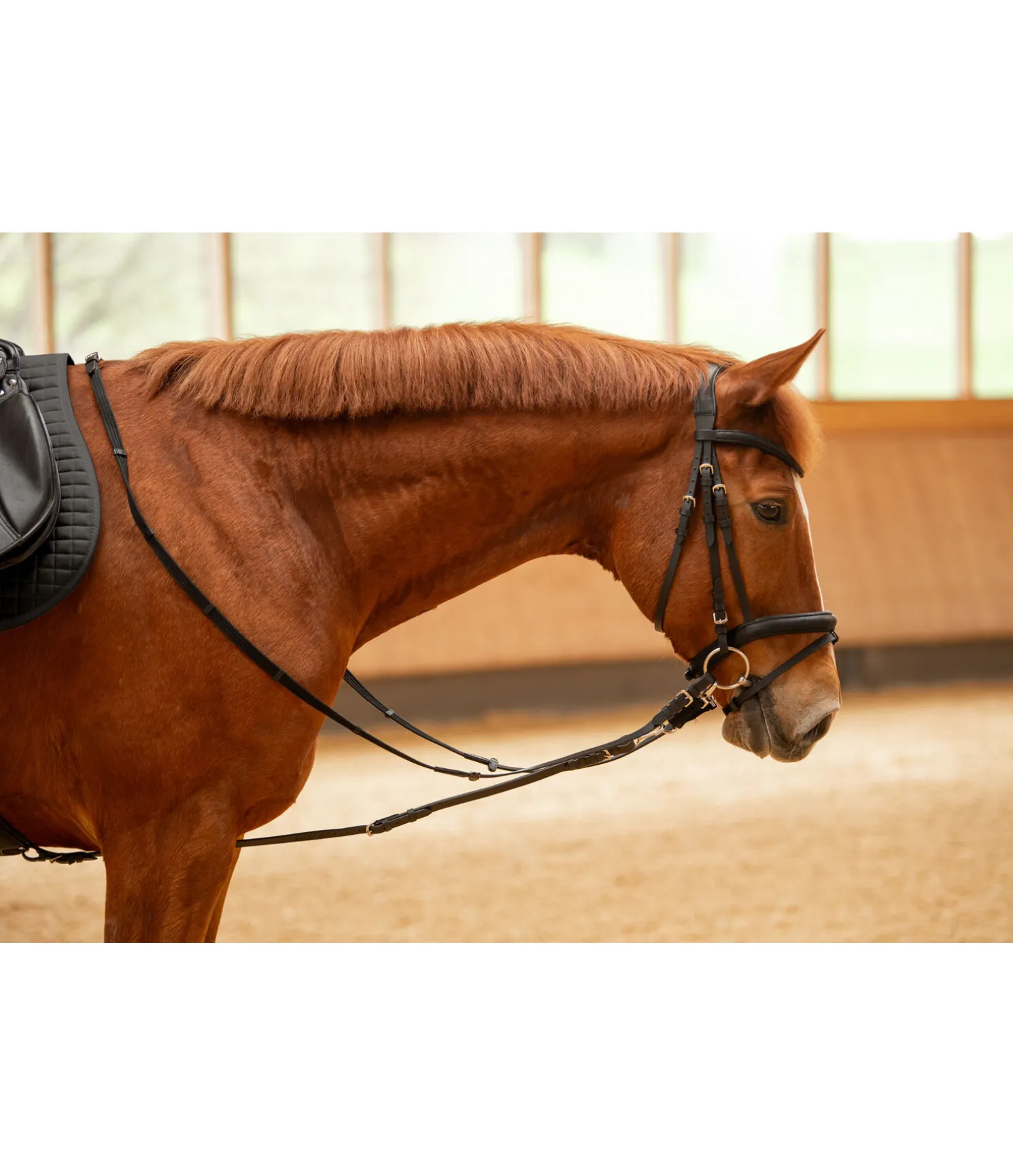 Enrênement en cuir de haute qualité de la marque SHOWMASTER. S’attache facilement à la sangle grâce au mousqueton et est facilement réglable en son milieu. De 100 cm à 112 cm.
