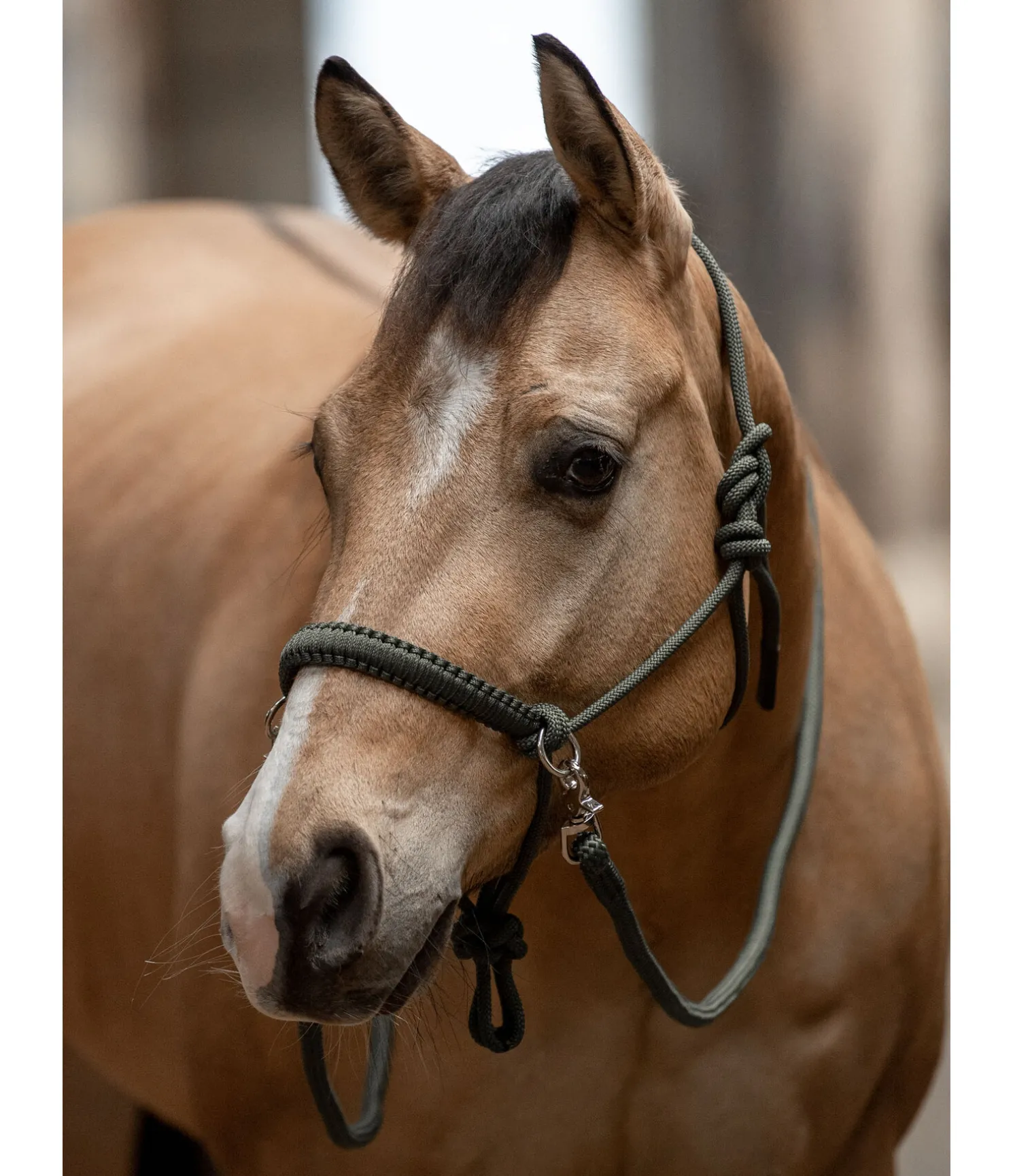 Licol à noeuds haut de gamme. Pour le travail au sol ou monté. En matière souple et résistante. Avec anneaux pour les rênes et muserolle tressée. Épaisseur de la corde 8 mm. Livré avec rênes à mousquetons et longe assorties. Longueur des rênes, mousquetons compris 2,6 m, épaisseur des rênes et de la longe 16 mm. Longueur de la longe 2,4 m.